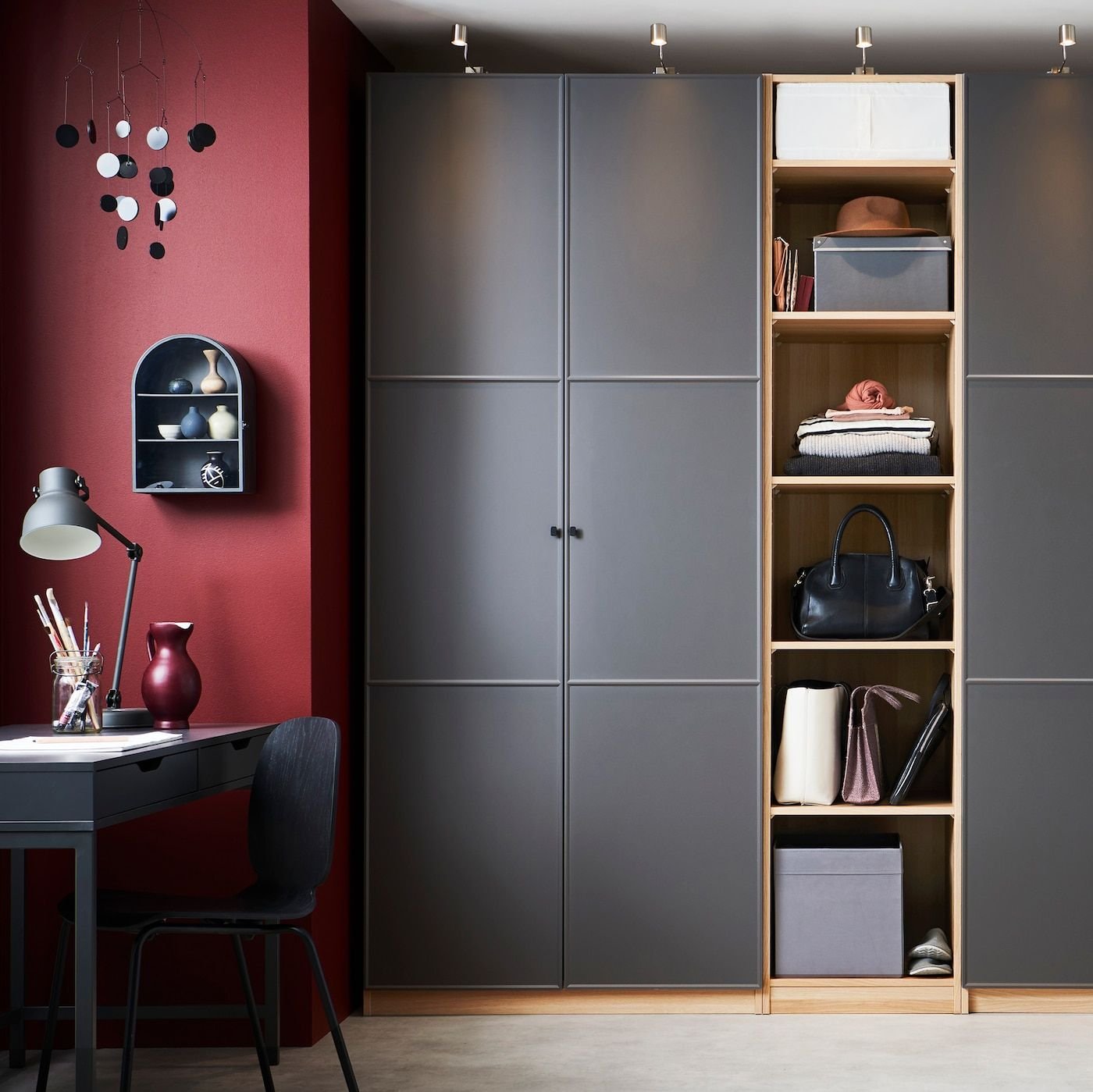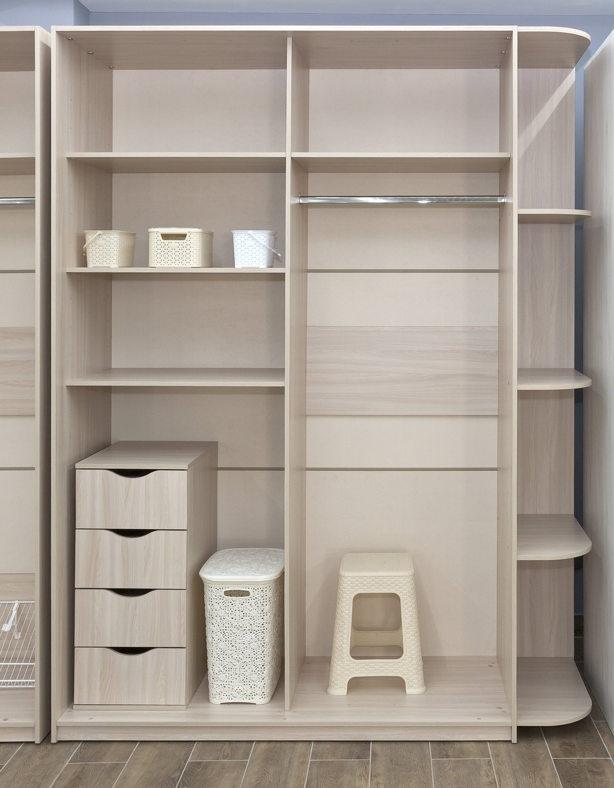 Шкаф в спальную с открытыми полками