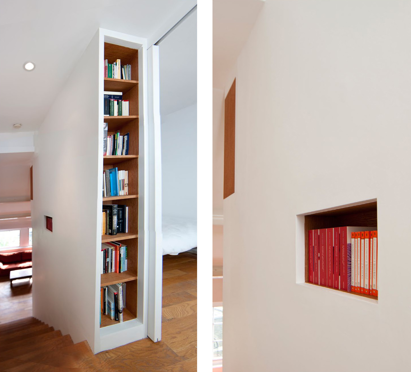 Книжный встроенный в нишу стеллаж
