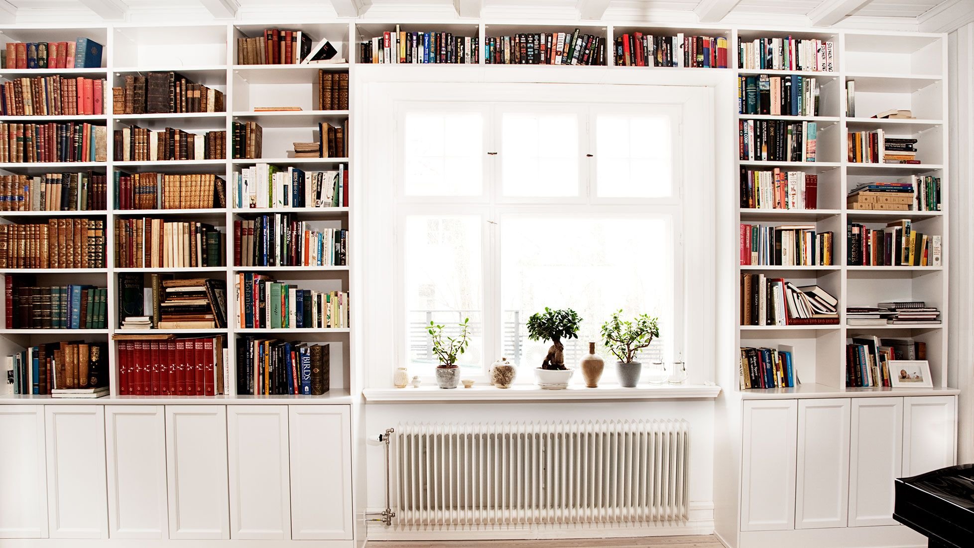 Книжные стеллажи вокруг окна