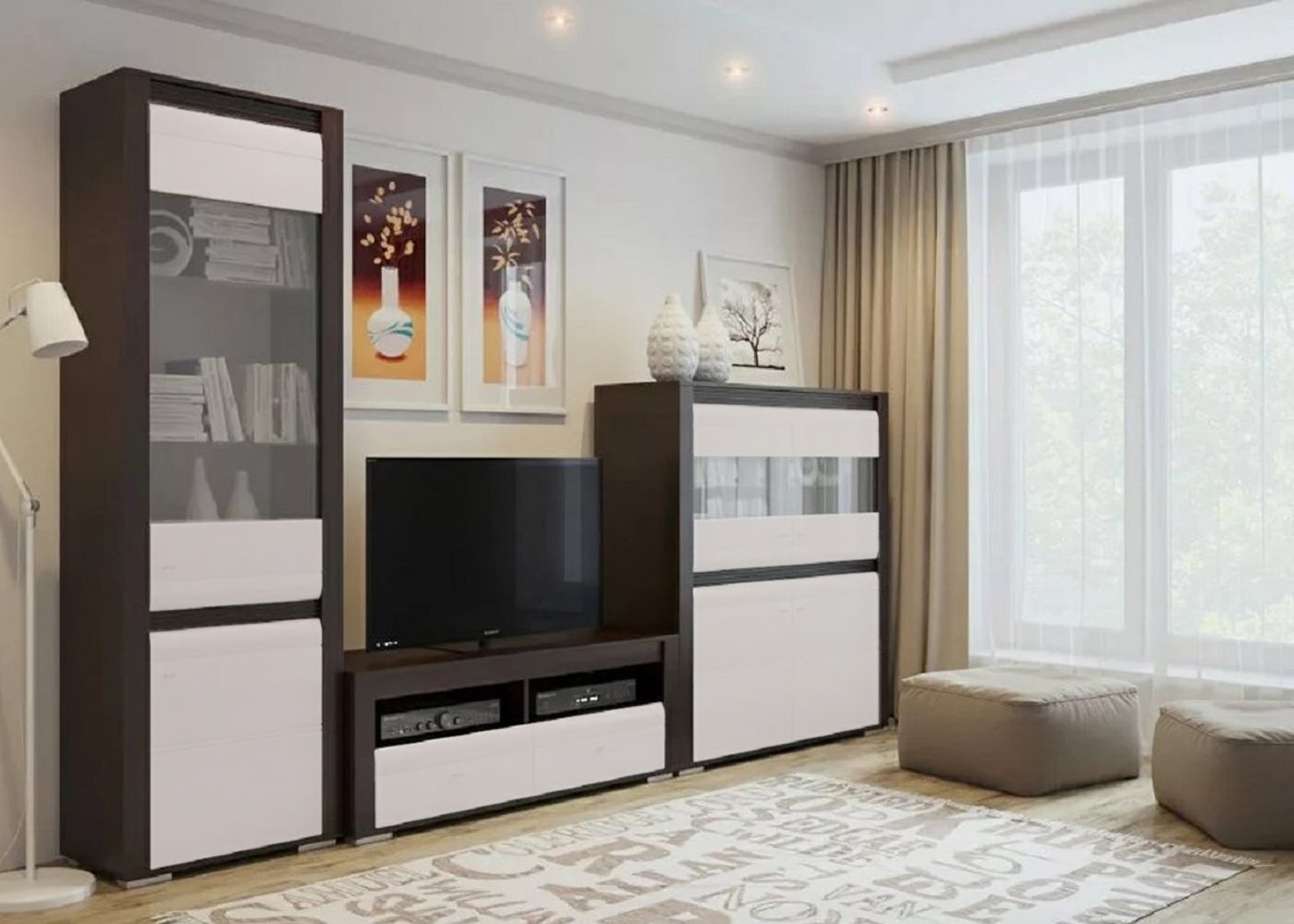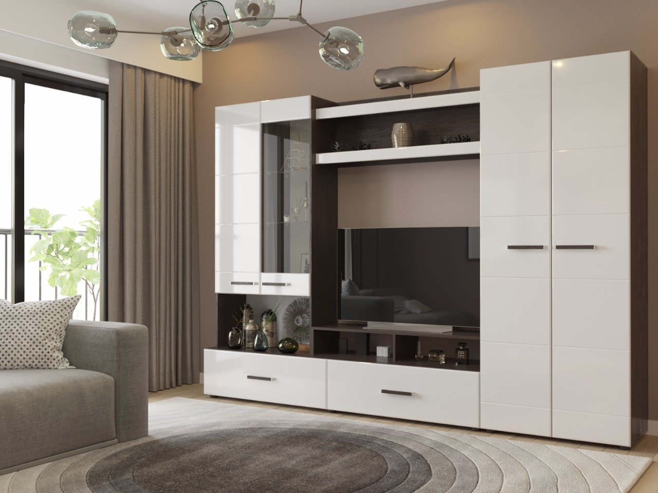 Гостиная Горизонт Ненси-1 венге/белый глянец