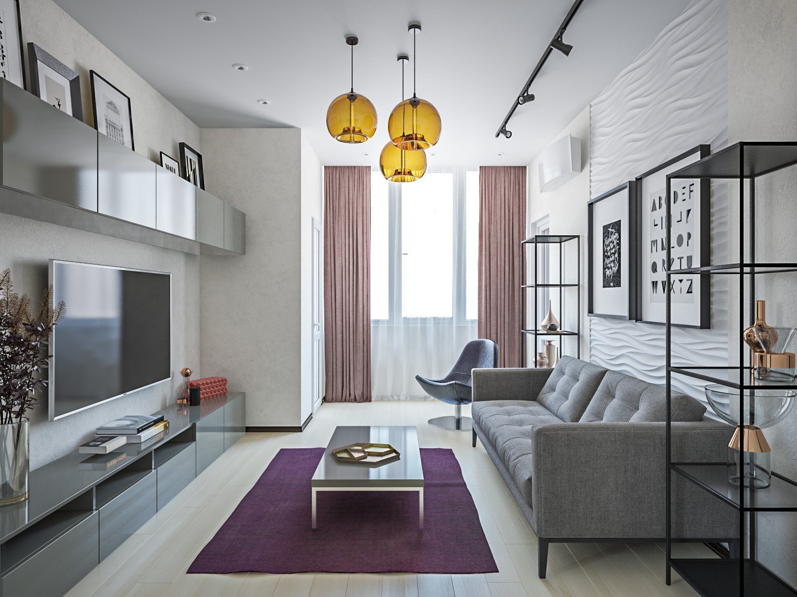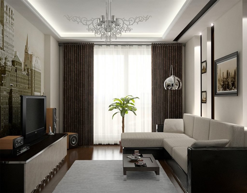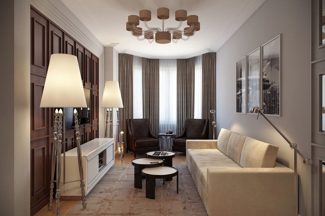 Интерьер узкой гостиной