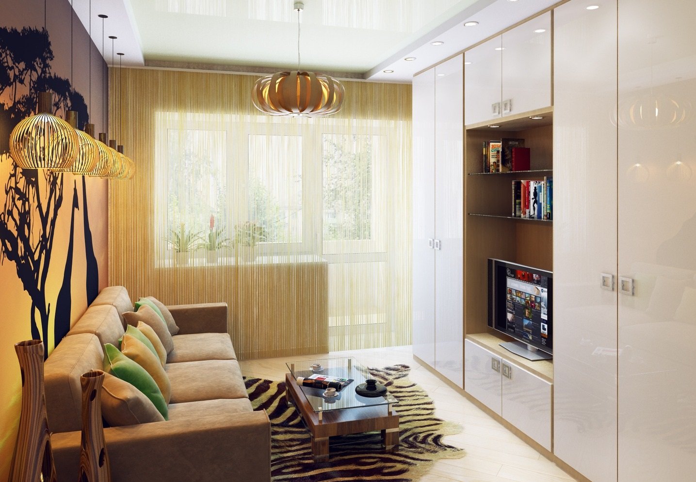 Узкая гостиная с балконом