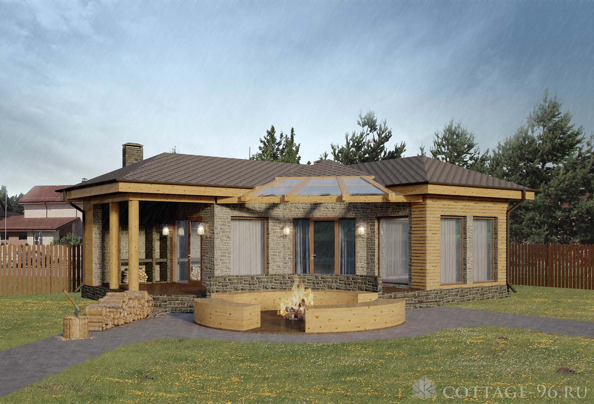 Беседка с мангальной зоной с прозрачной крышей