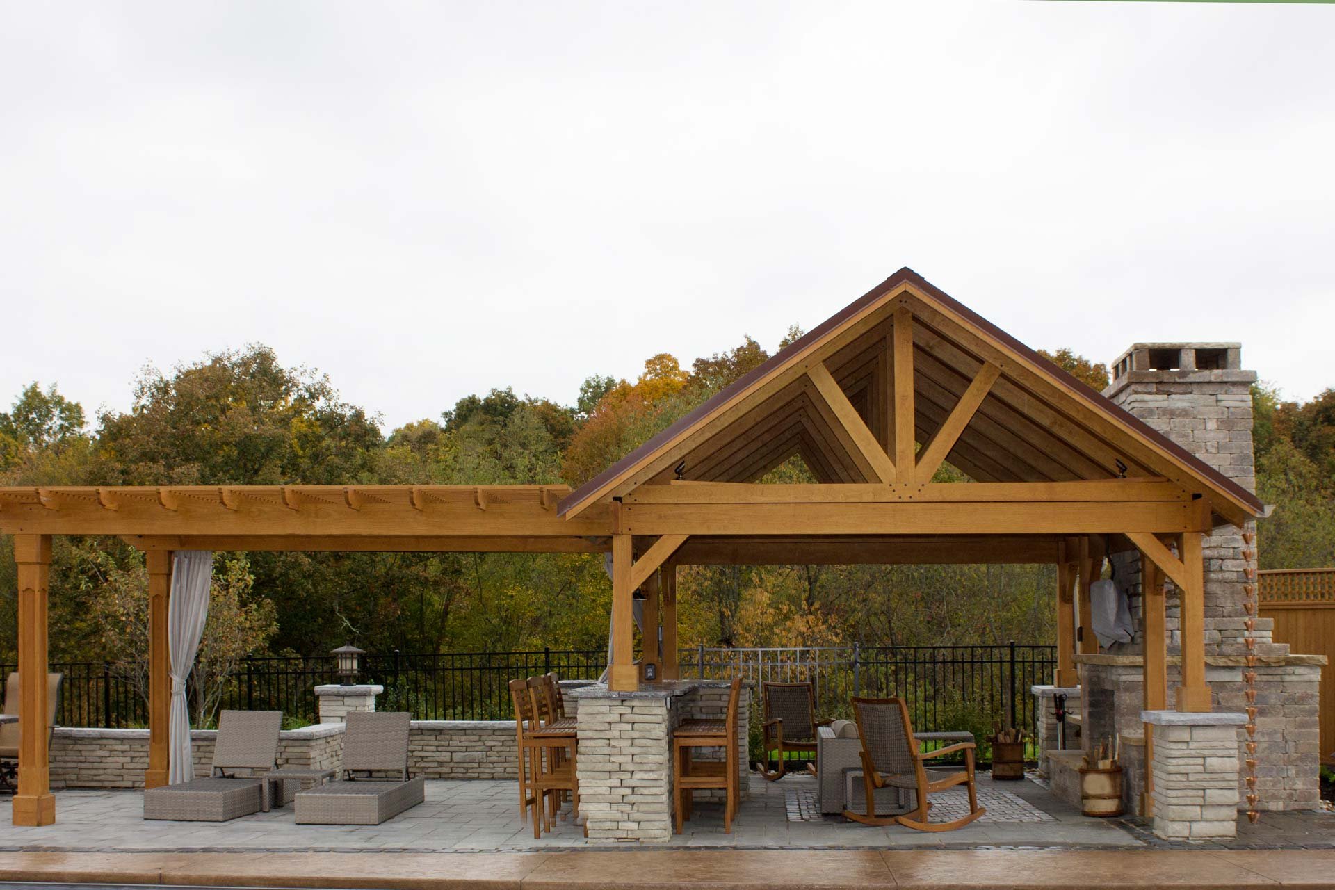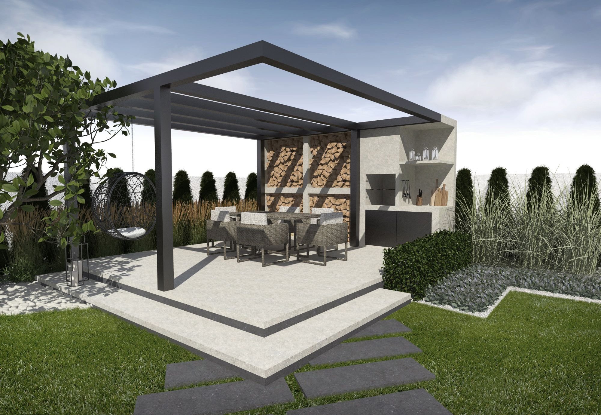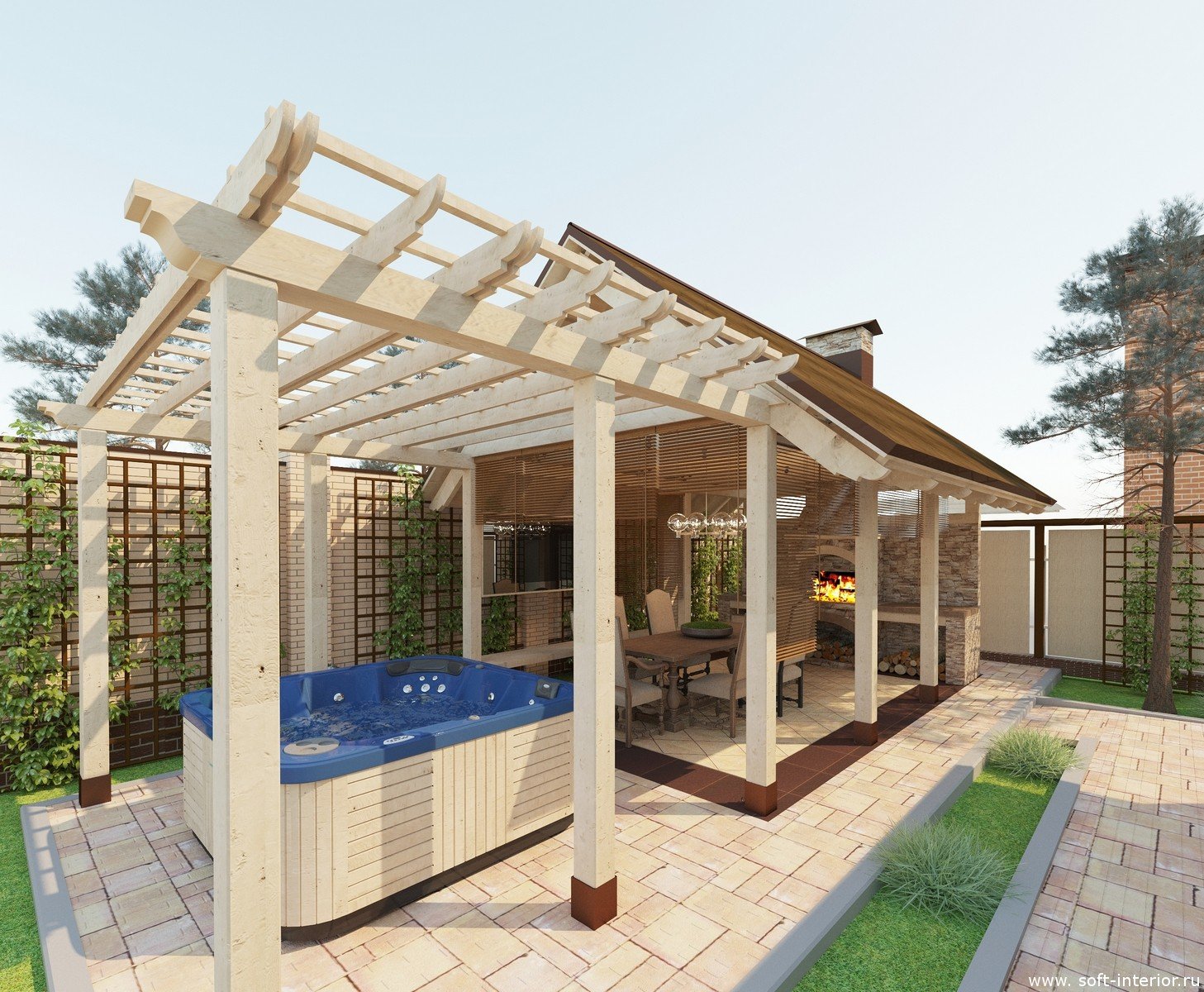 Зона барбекю с перголой