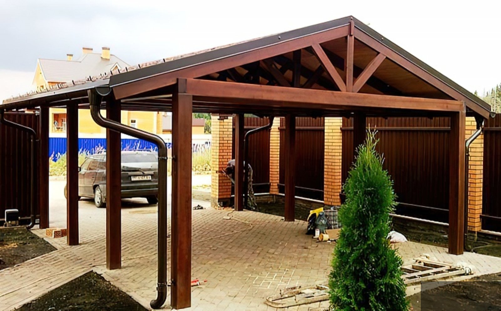 Деревянный навес для машины