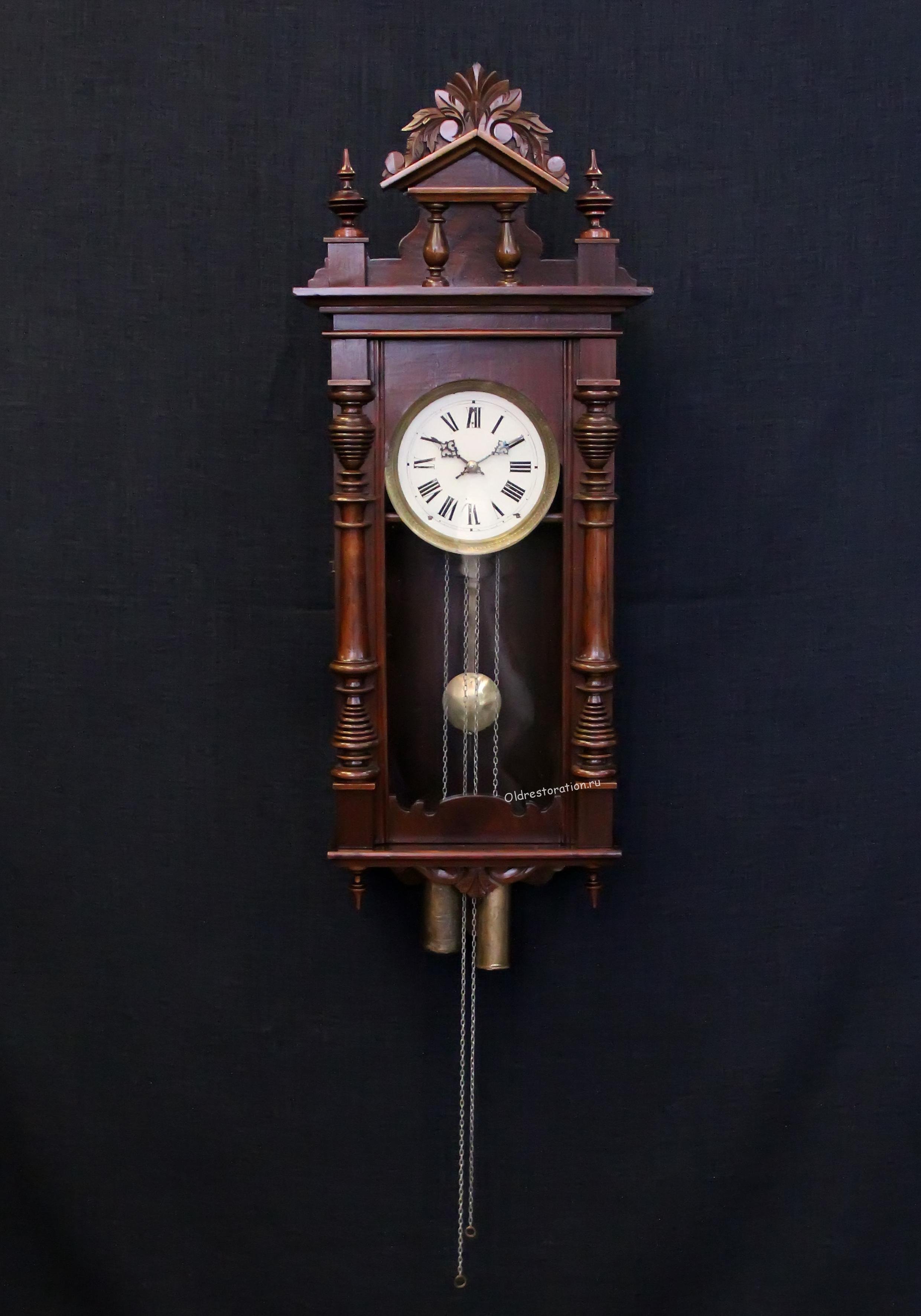 Настенные часы с маятником и гирями 19 века