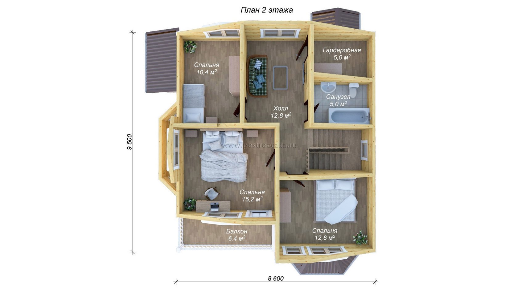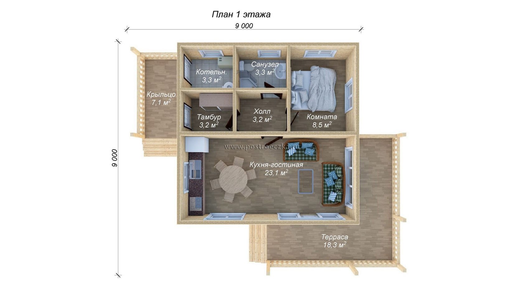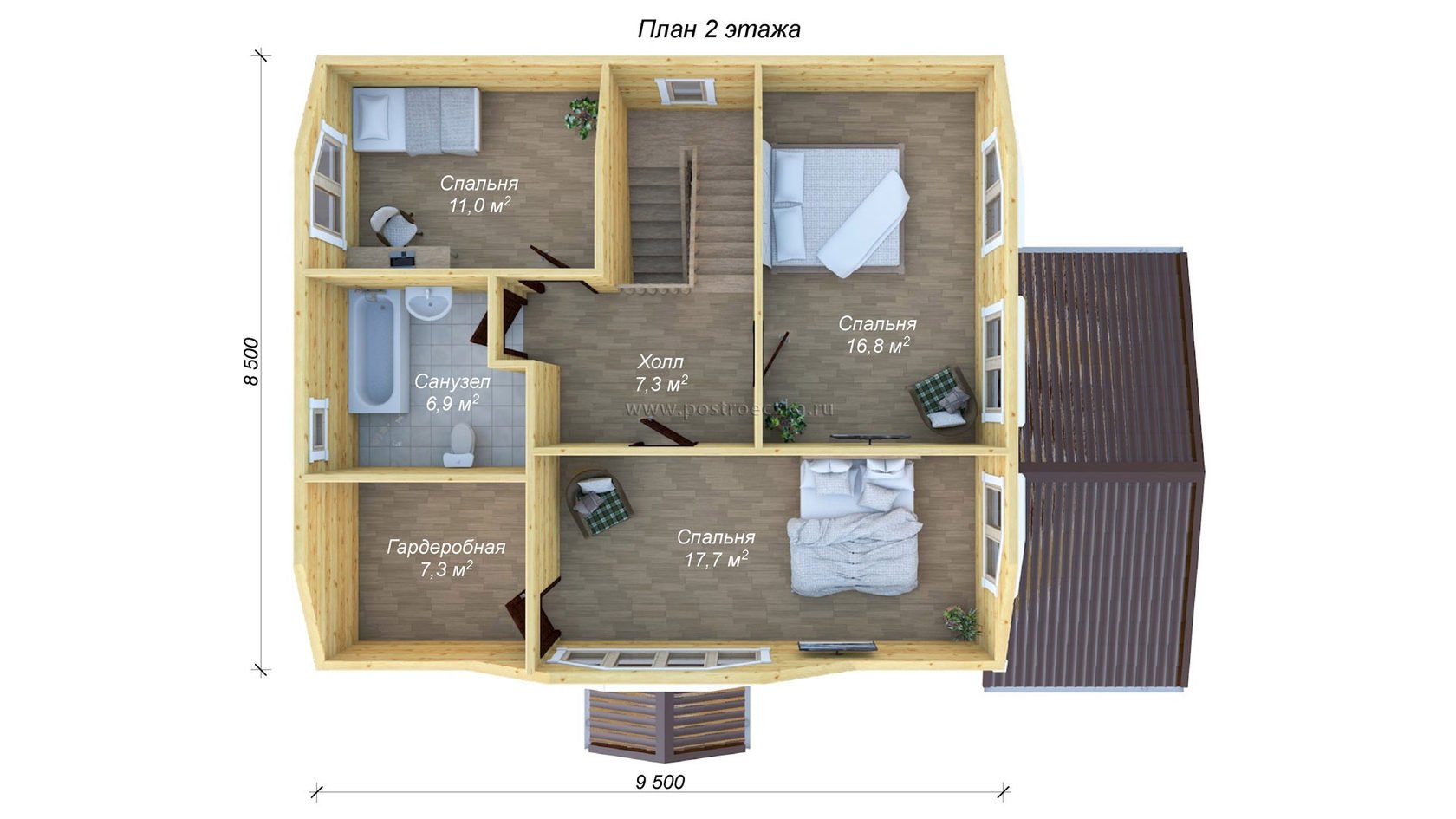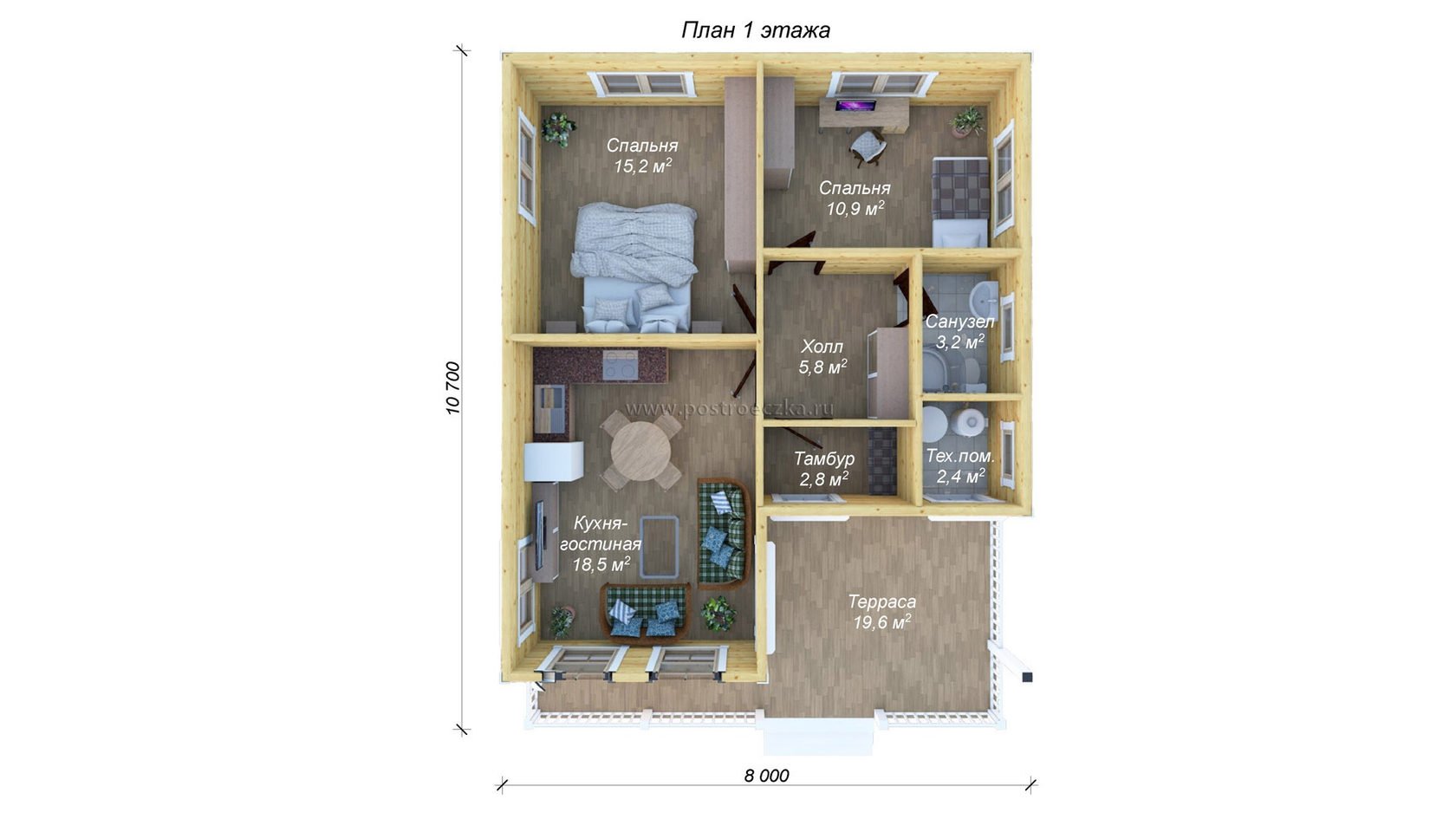 Планировка одноэтажного каркасного дома с 2 спальнями