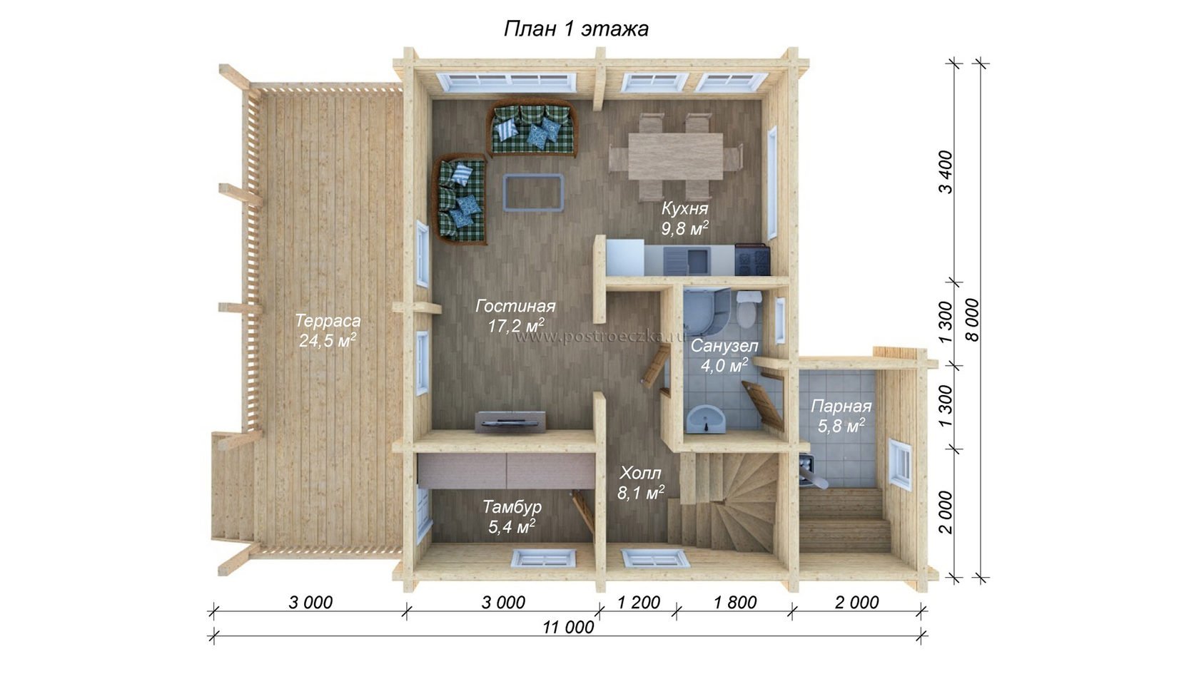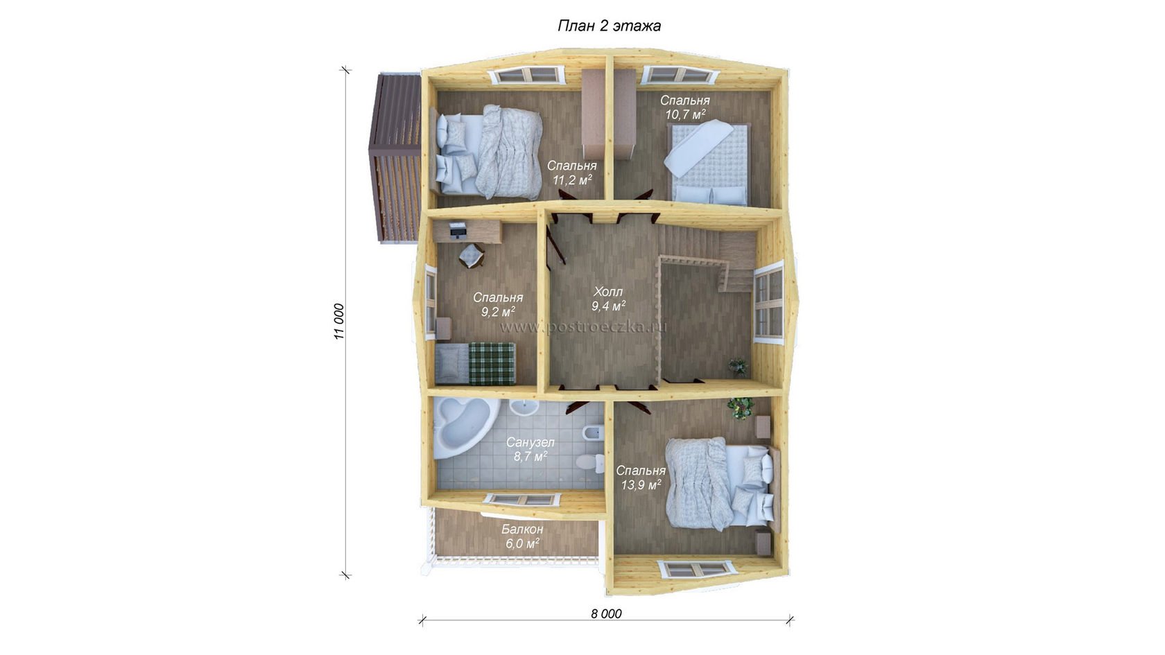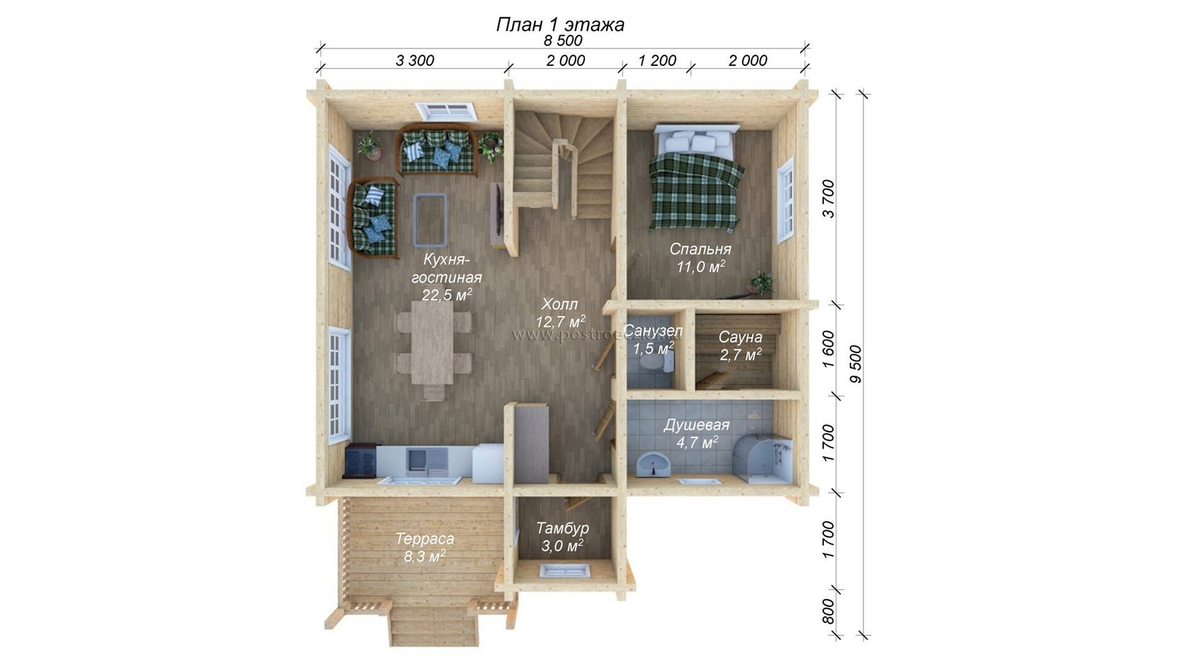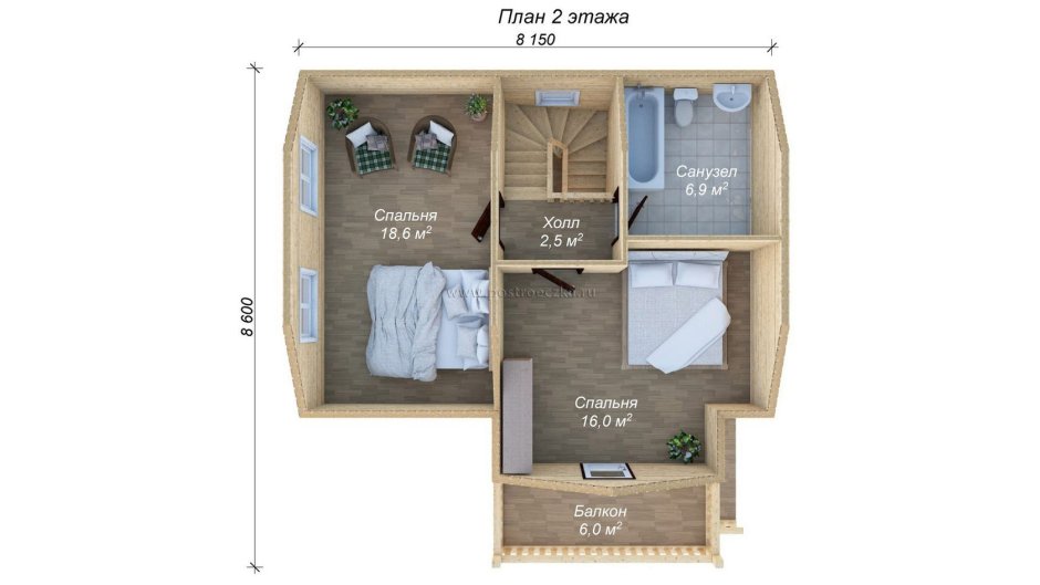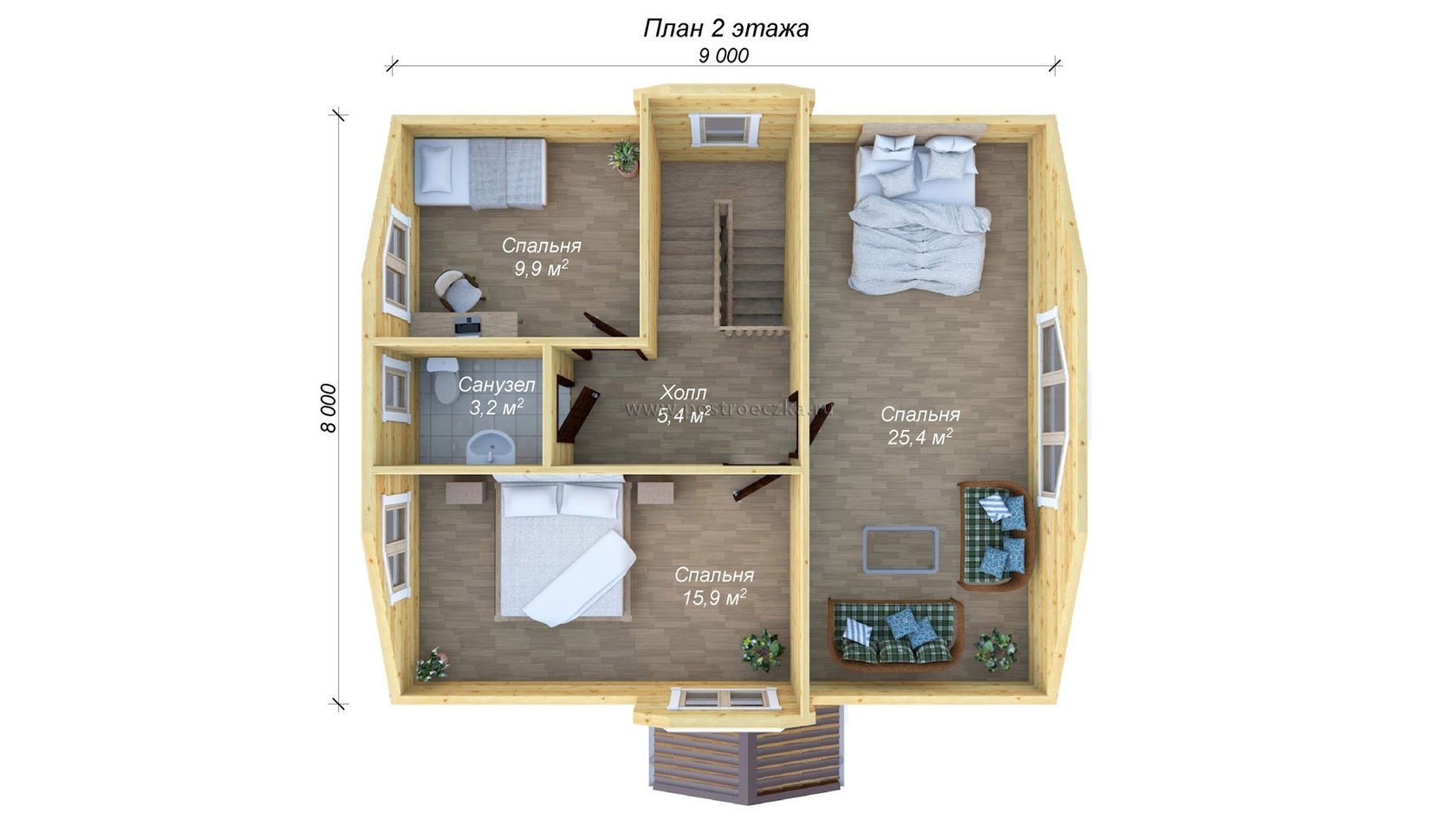 Планировка одноэтажного каркасного дома с 2 спальнями