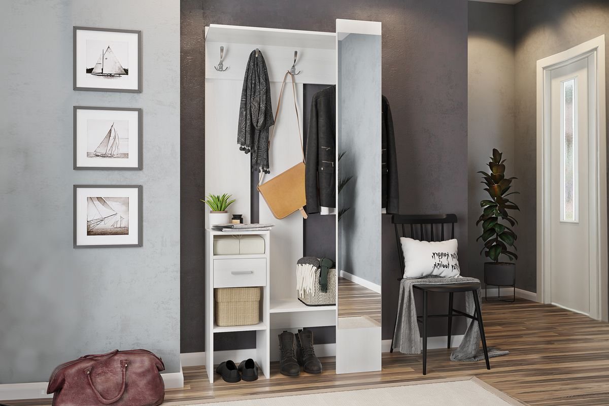 Прихожая с зеркалом Ника 910х354х2035 белая глянец
