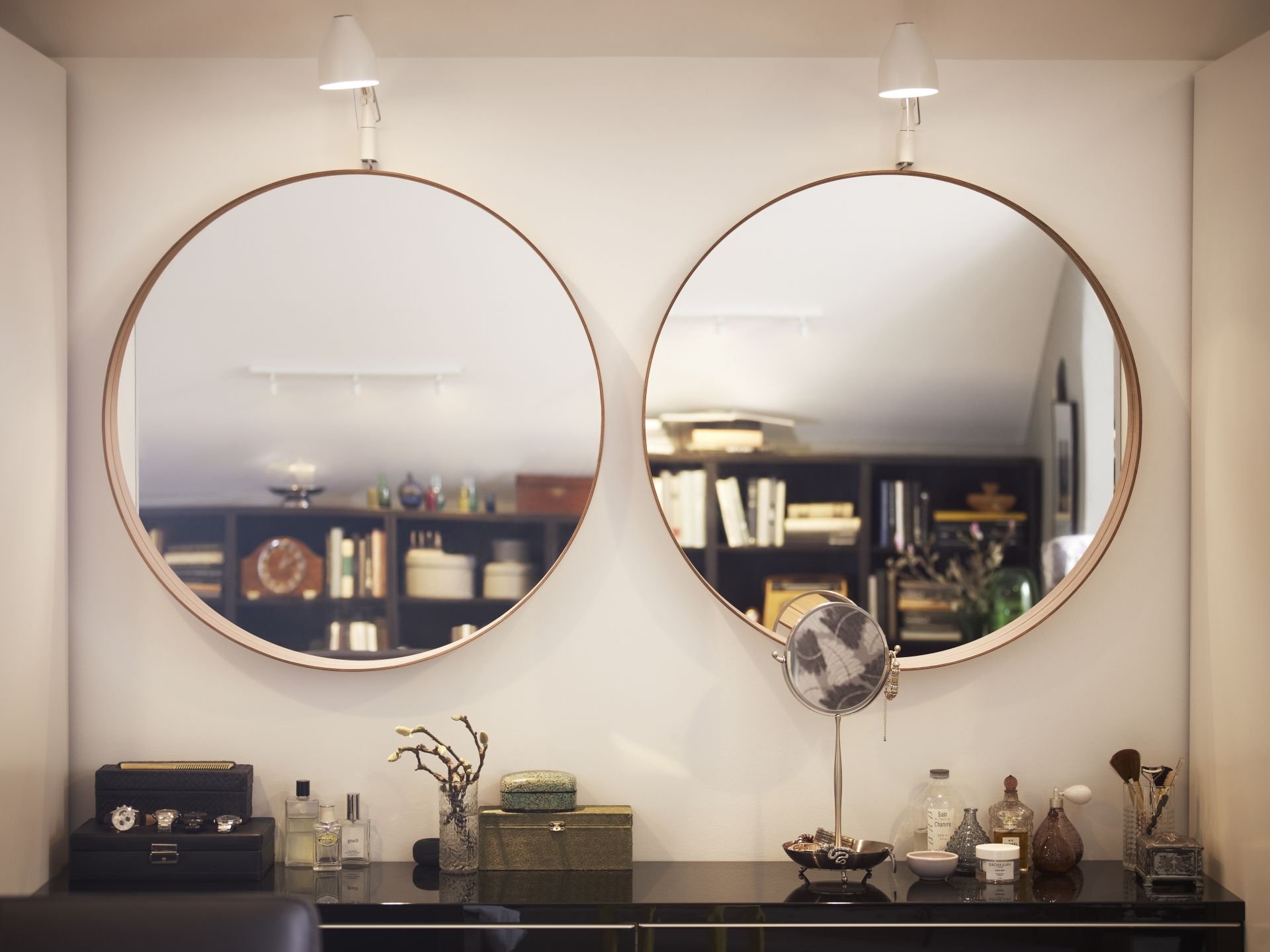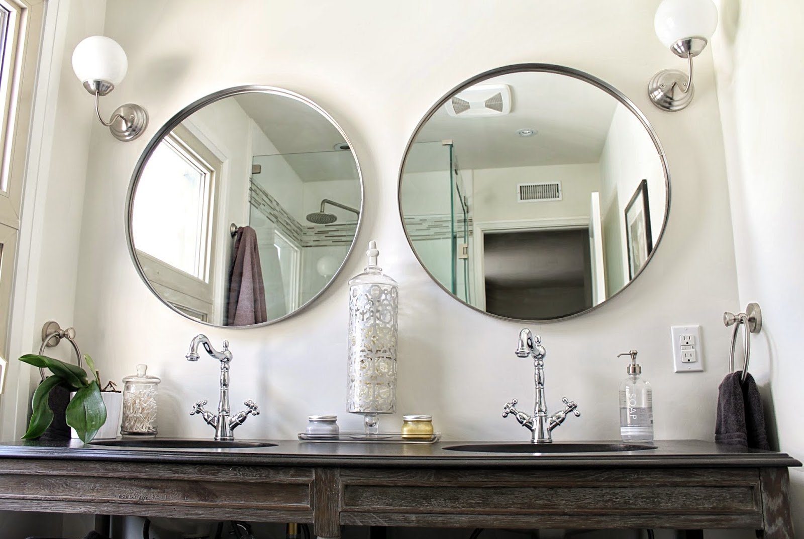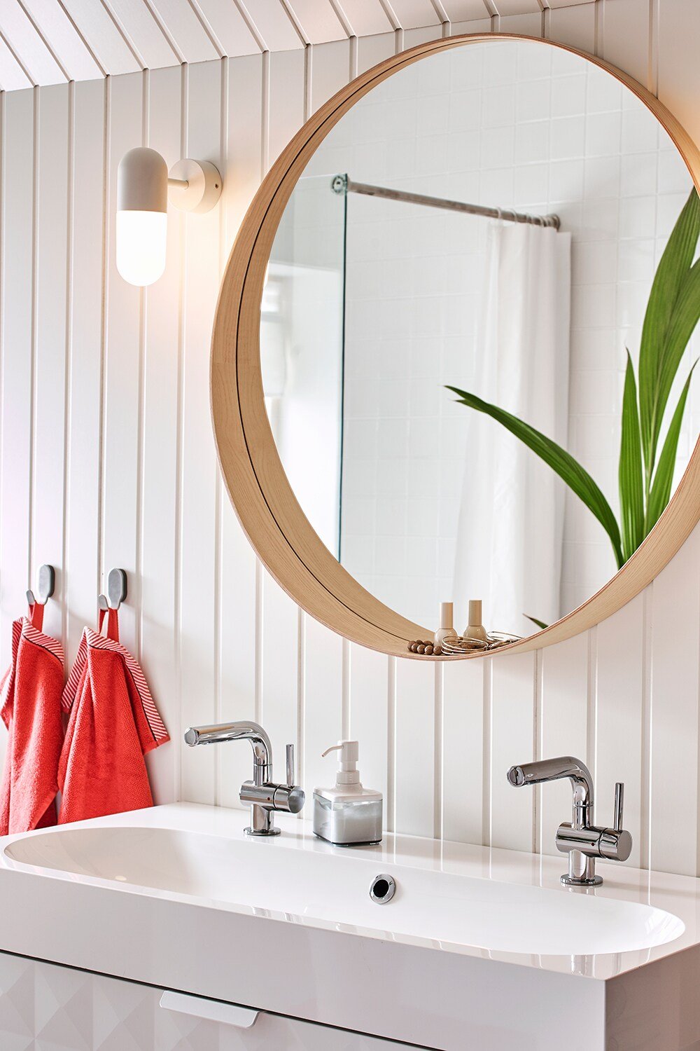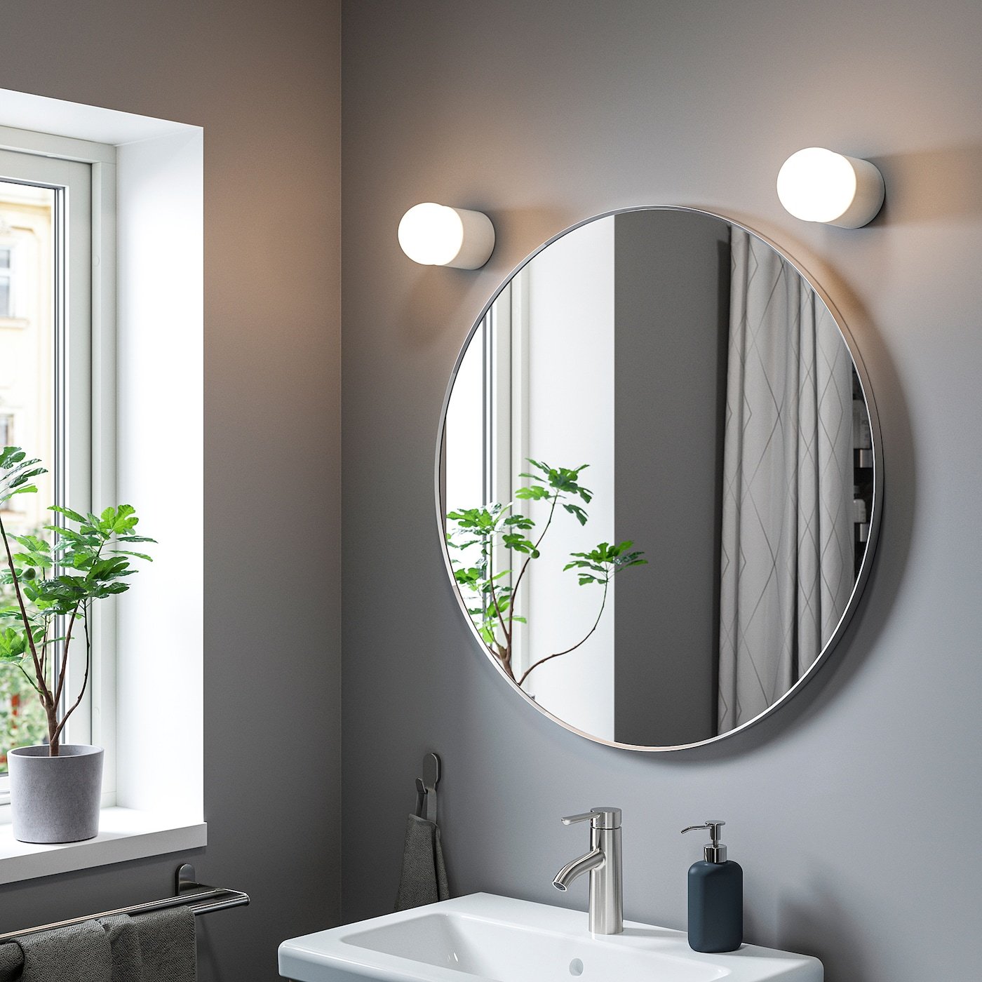 Круглое зеркало икеа в интерьере ванной