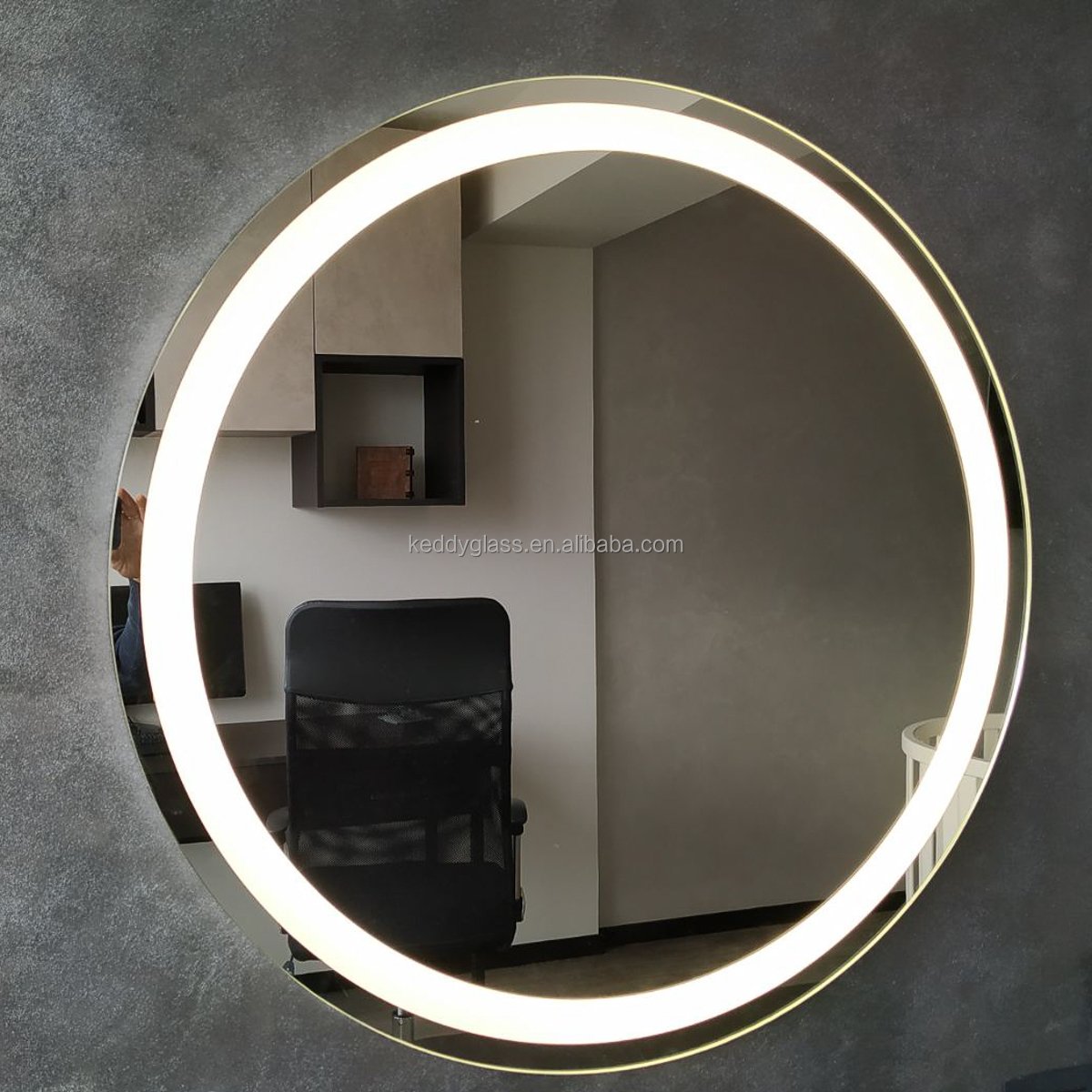 Круглое зеркало с подсветкой в тонкой раме