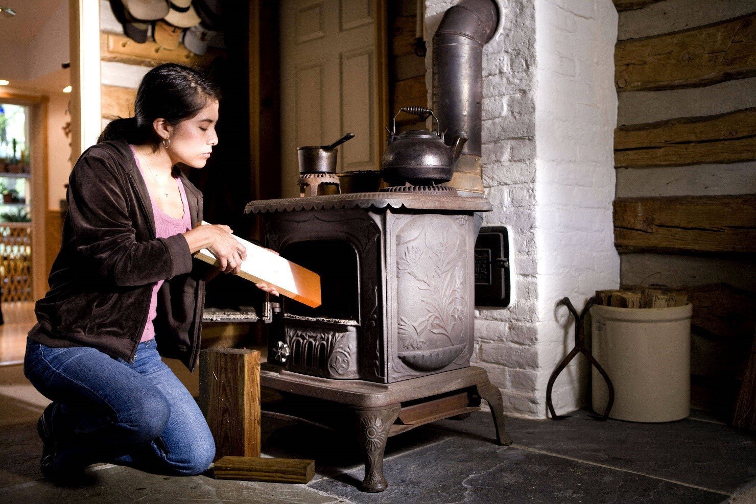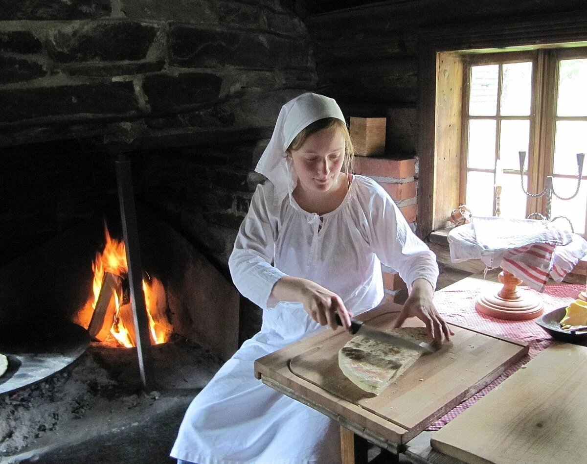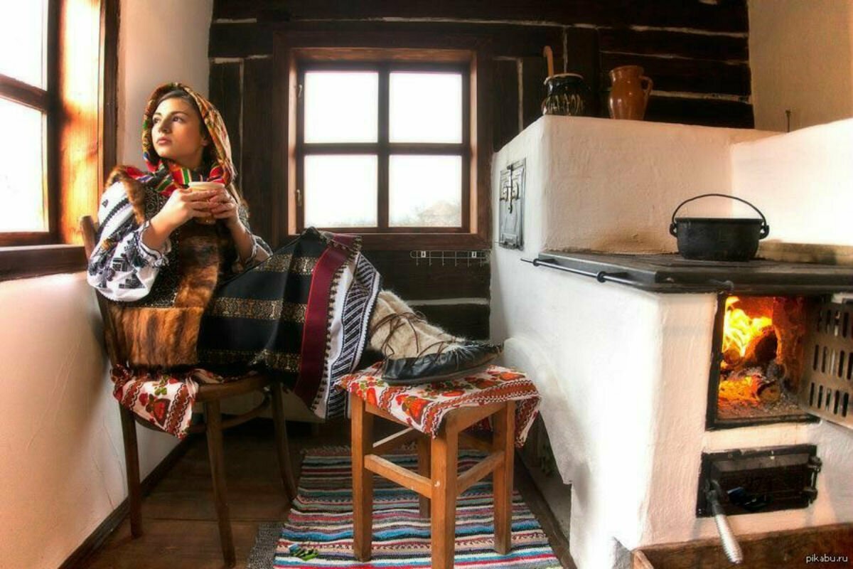 Женщина в деревне у печи