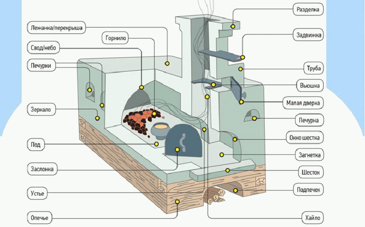 Устройство русской печи схема