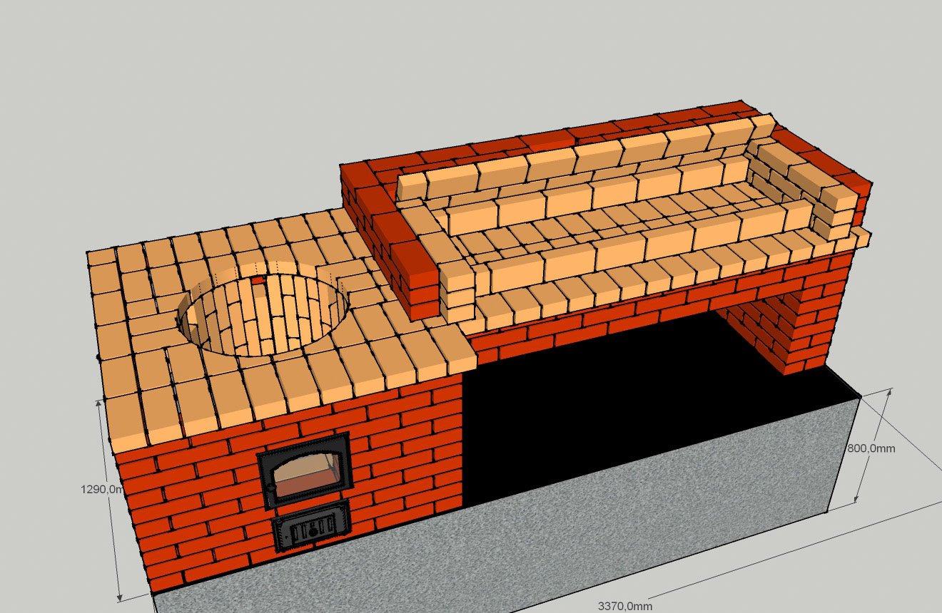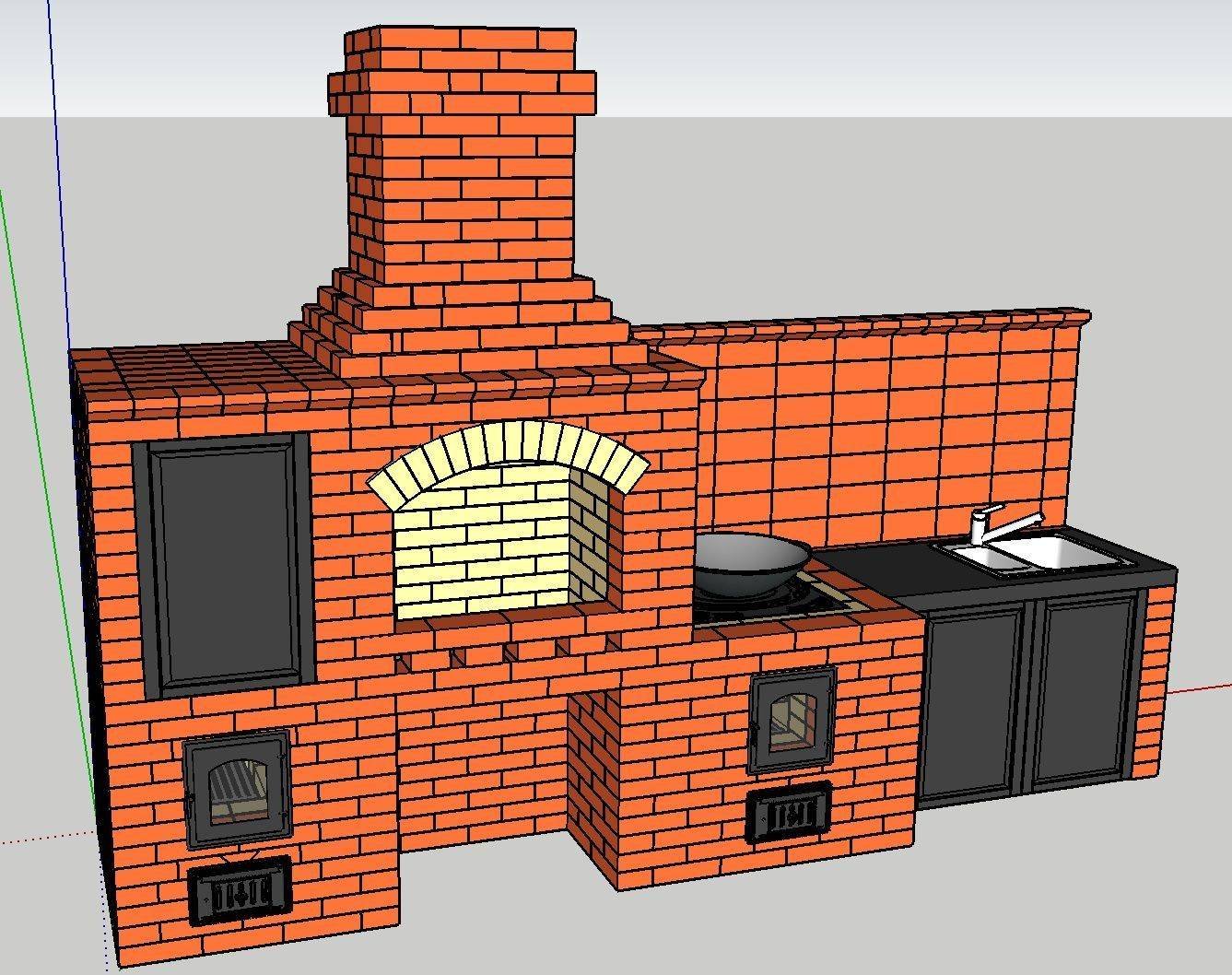 Печь с мангалом и казаном для беседки порядовка и схема