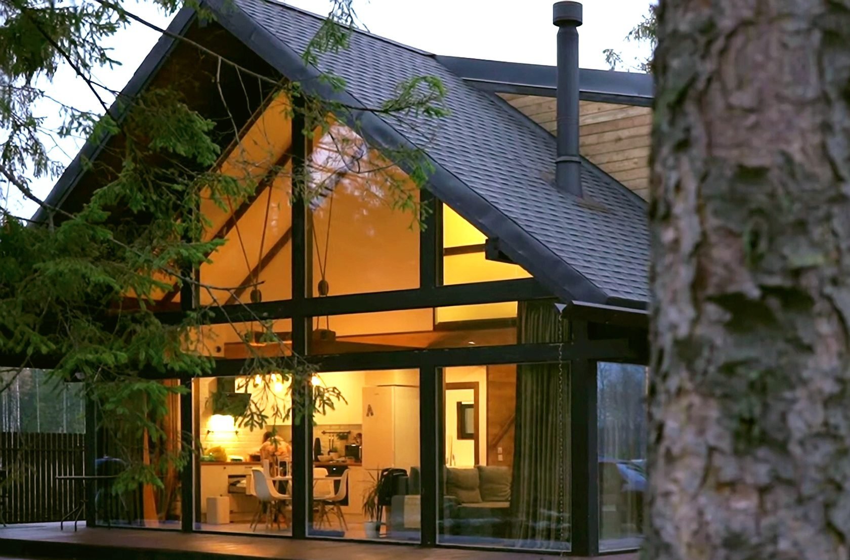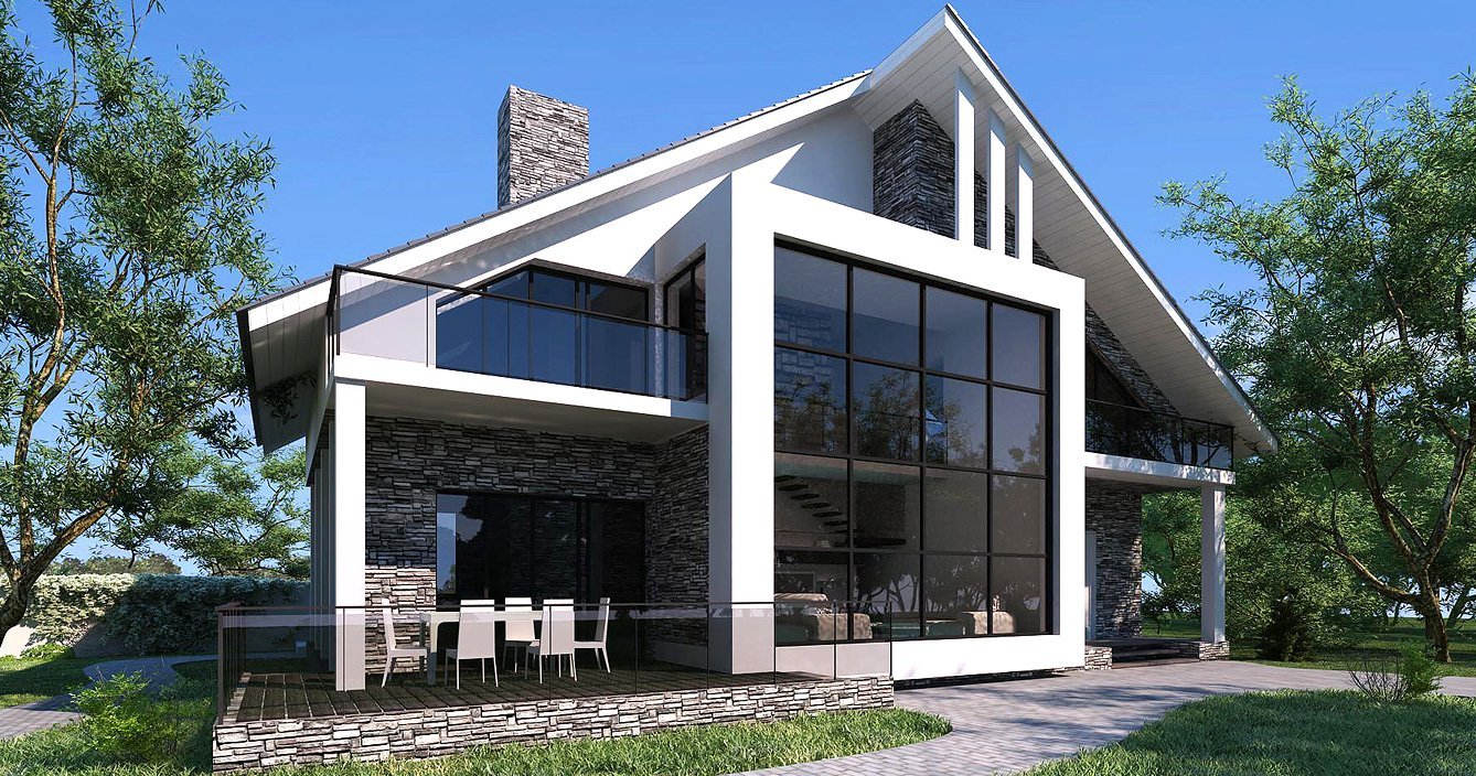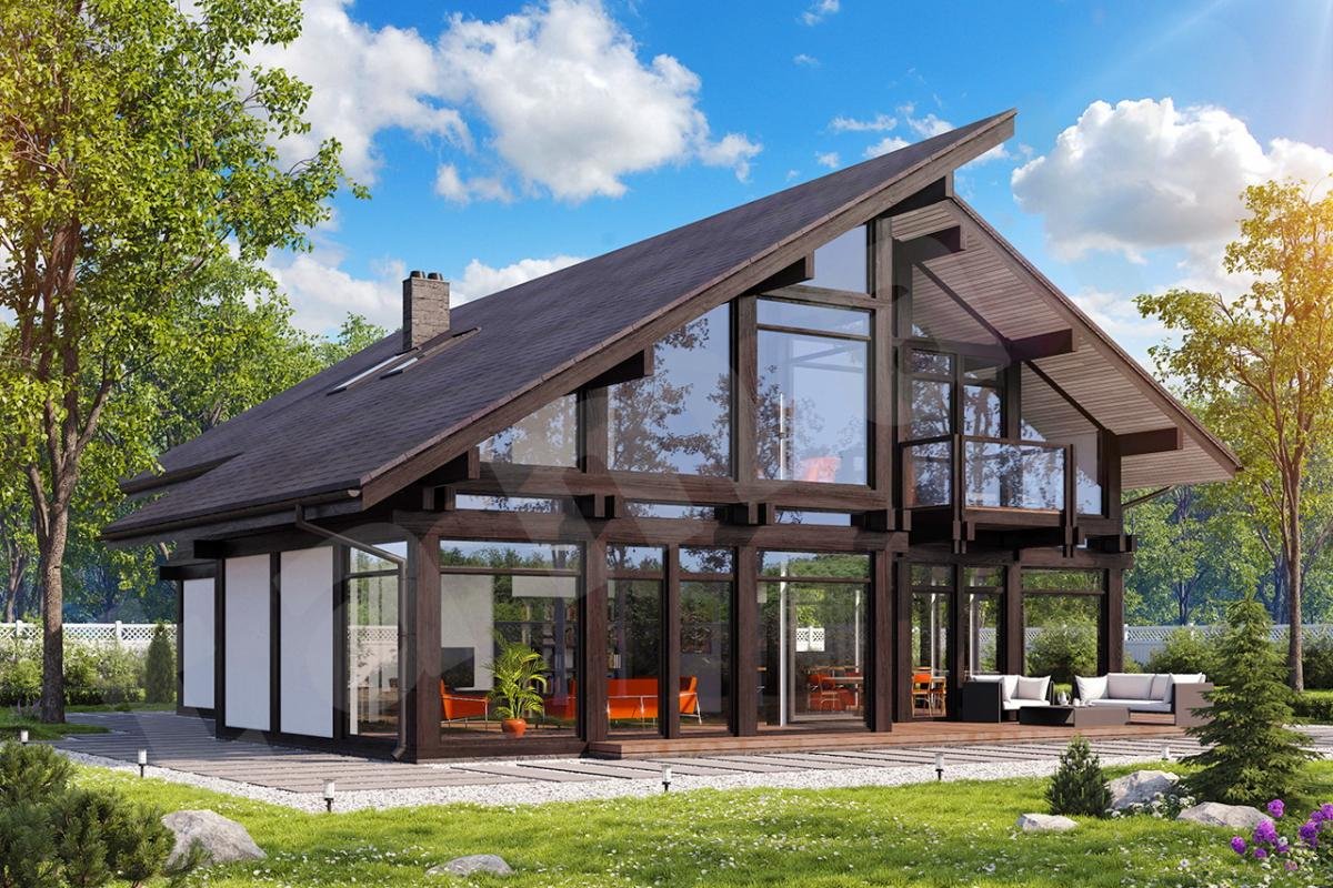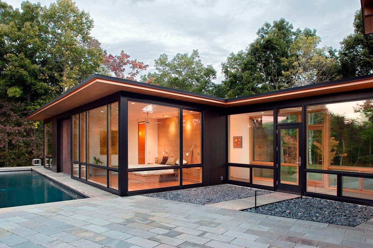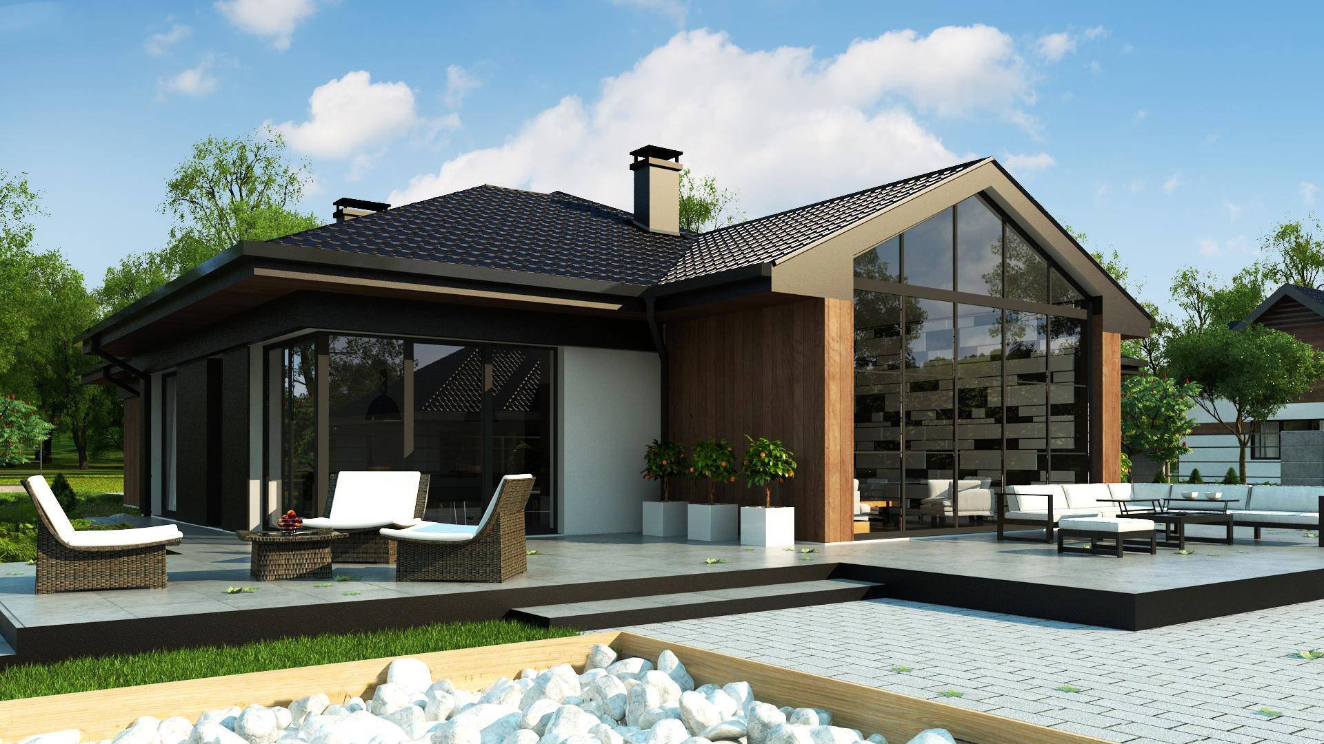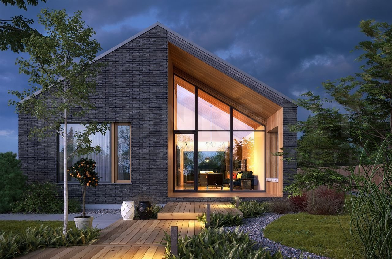 Одноэтажный дом в стиле лофт с панорамными окнами