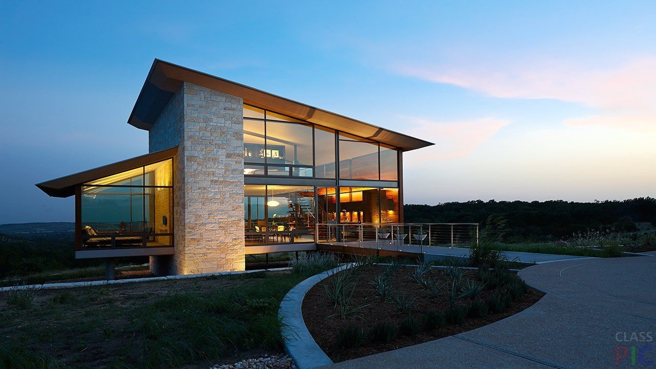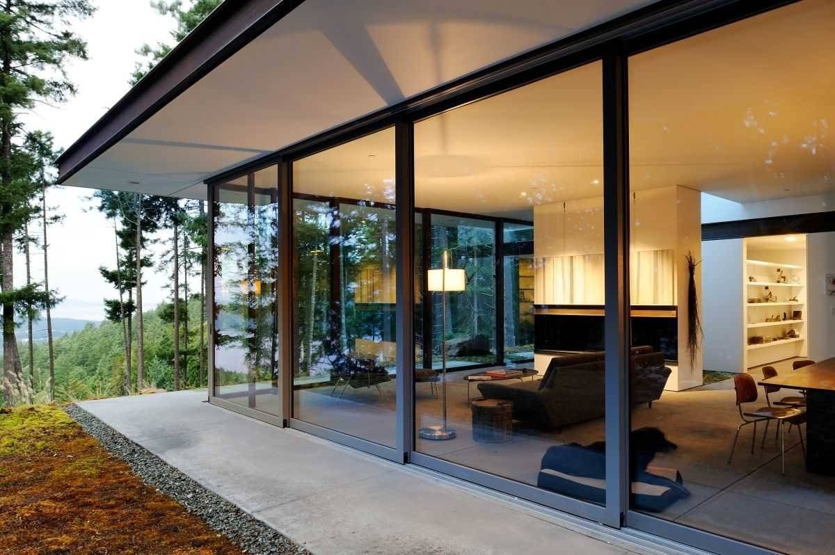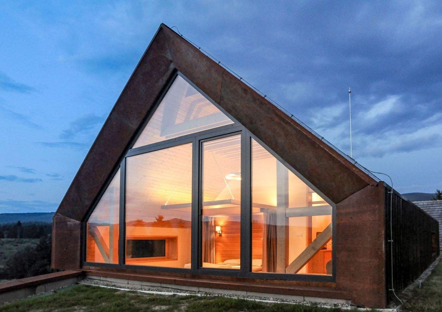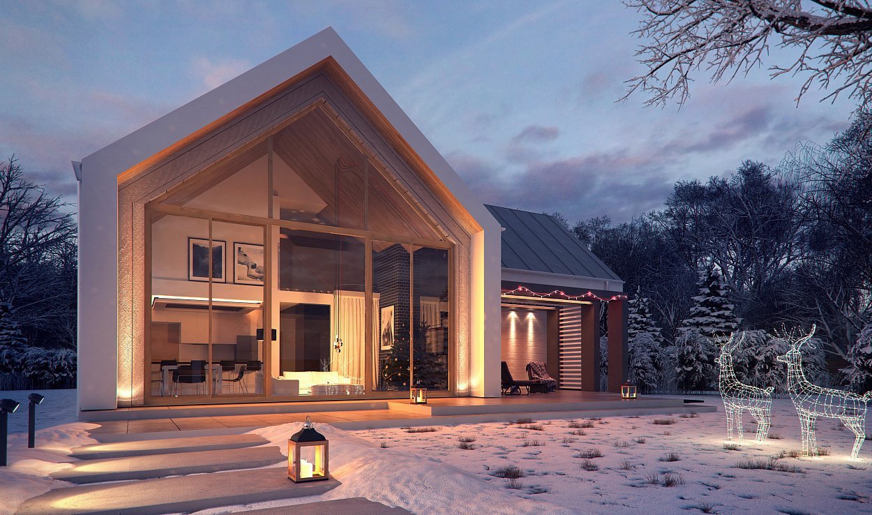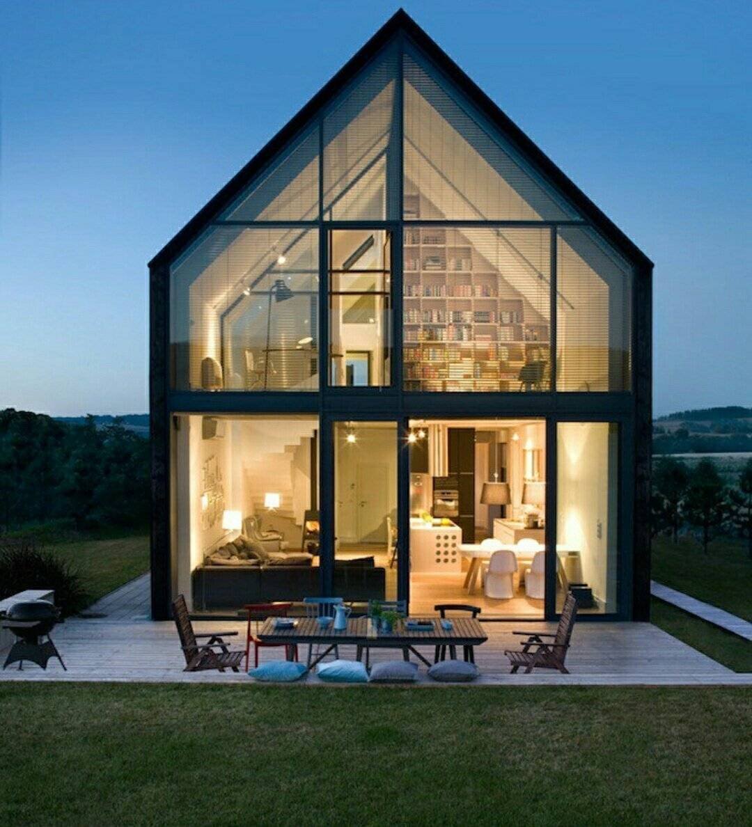 Одноэтажный дом в стиле лофт с панорамными окнами