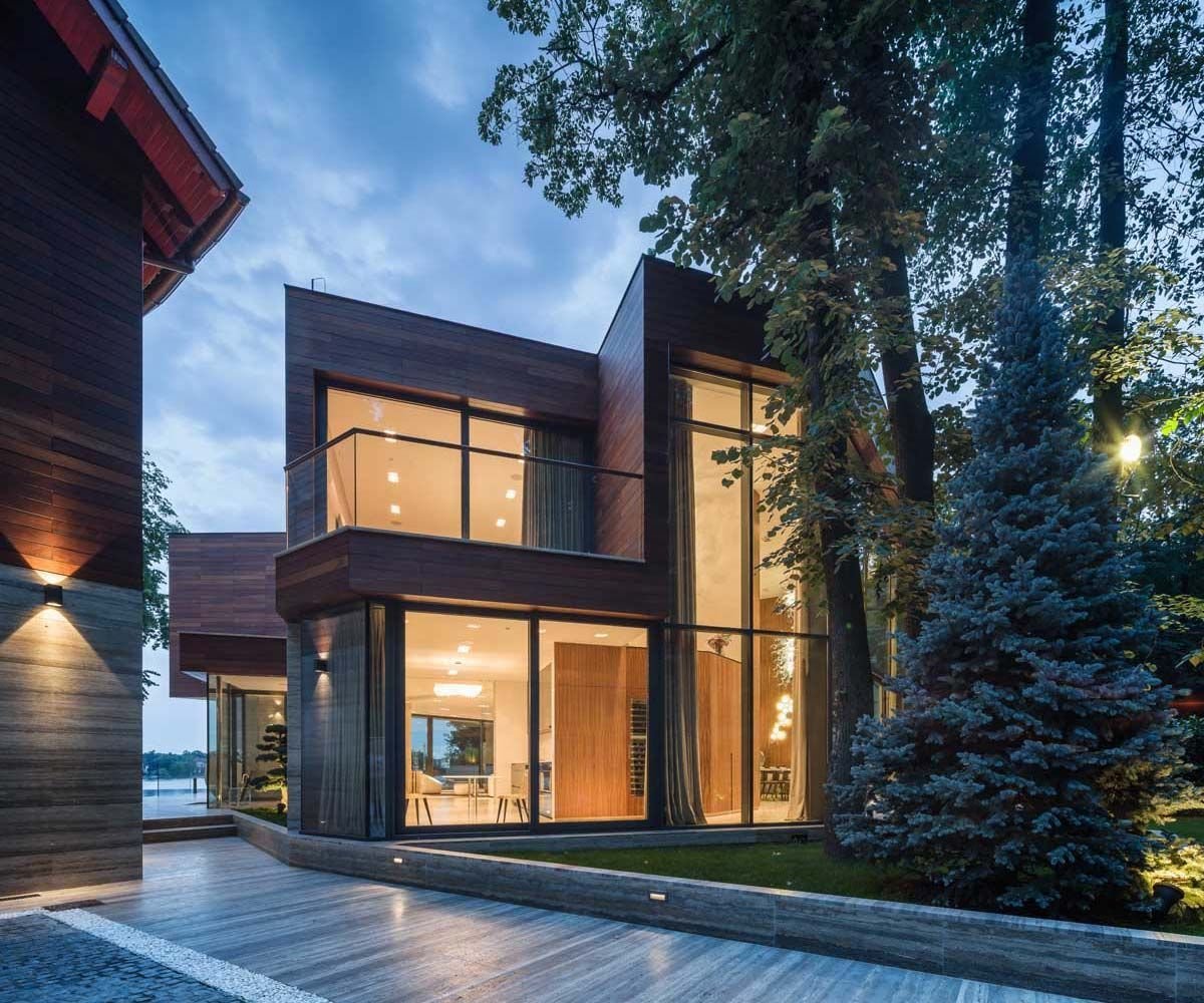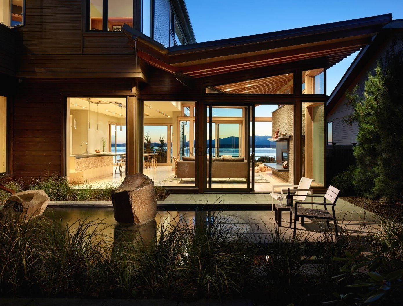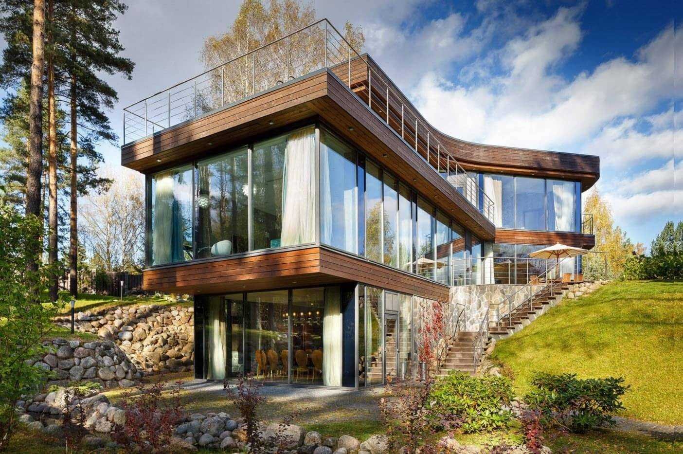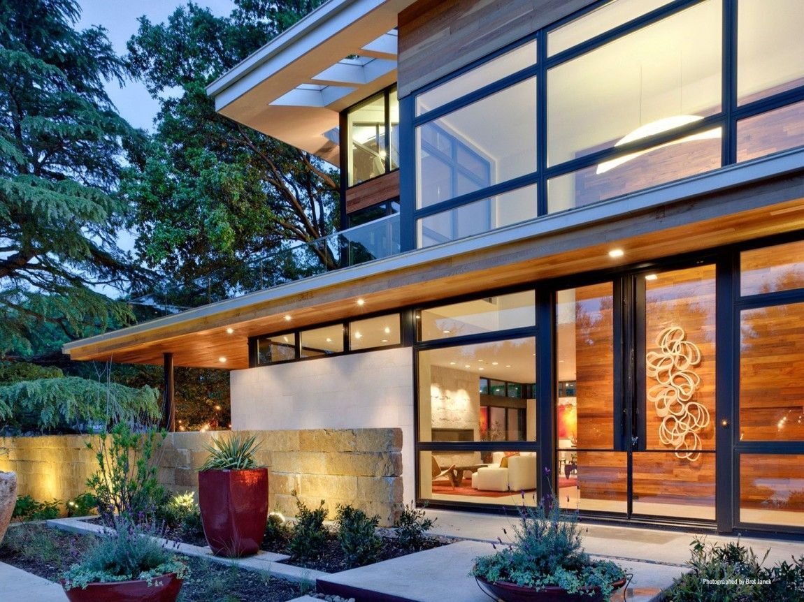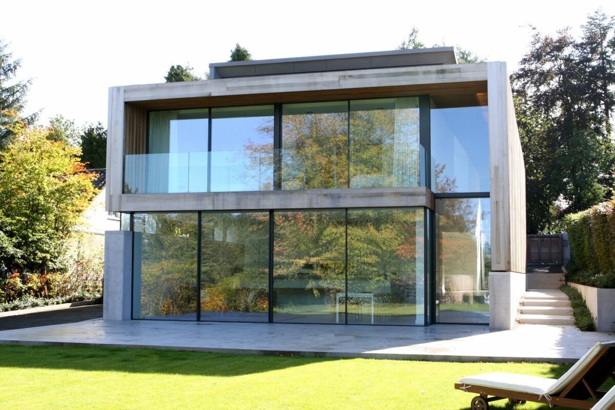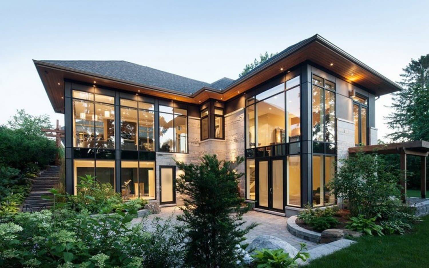 Одноэтажный дом в стиле лофт с панорамными окнами