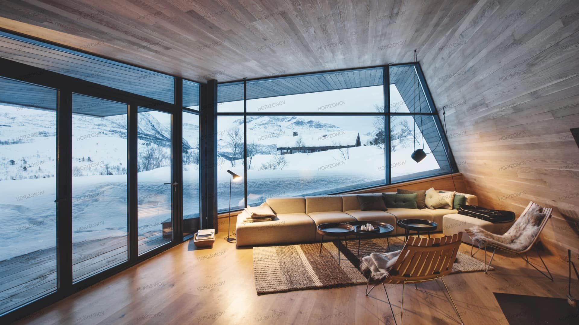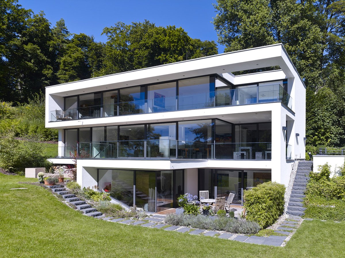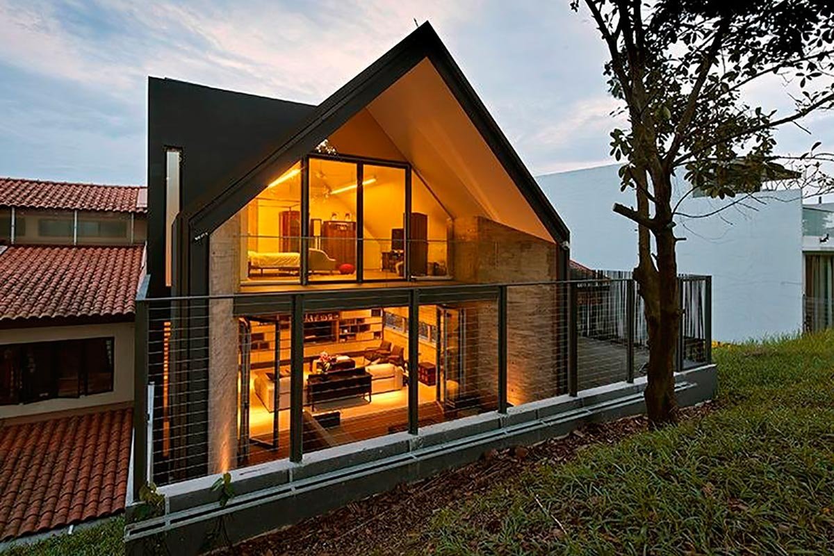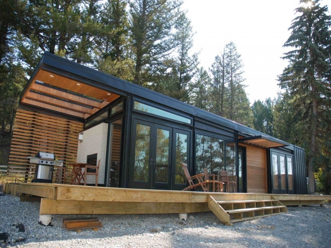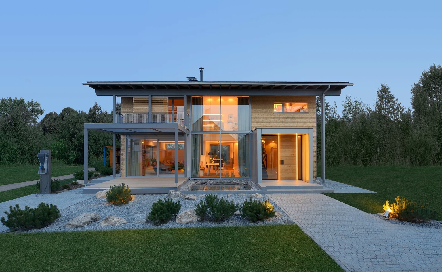 Одноэтажный дом в стиле лофт с панорамными окнами