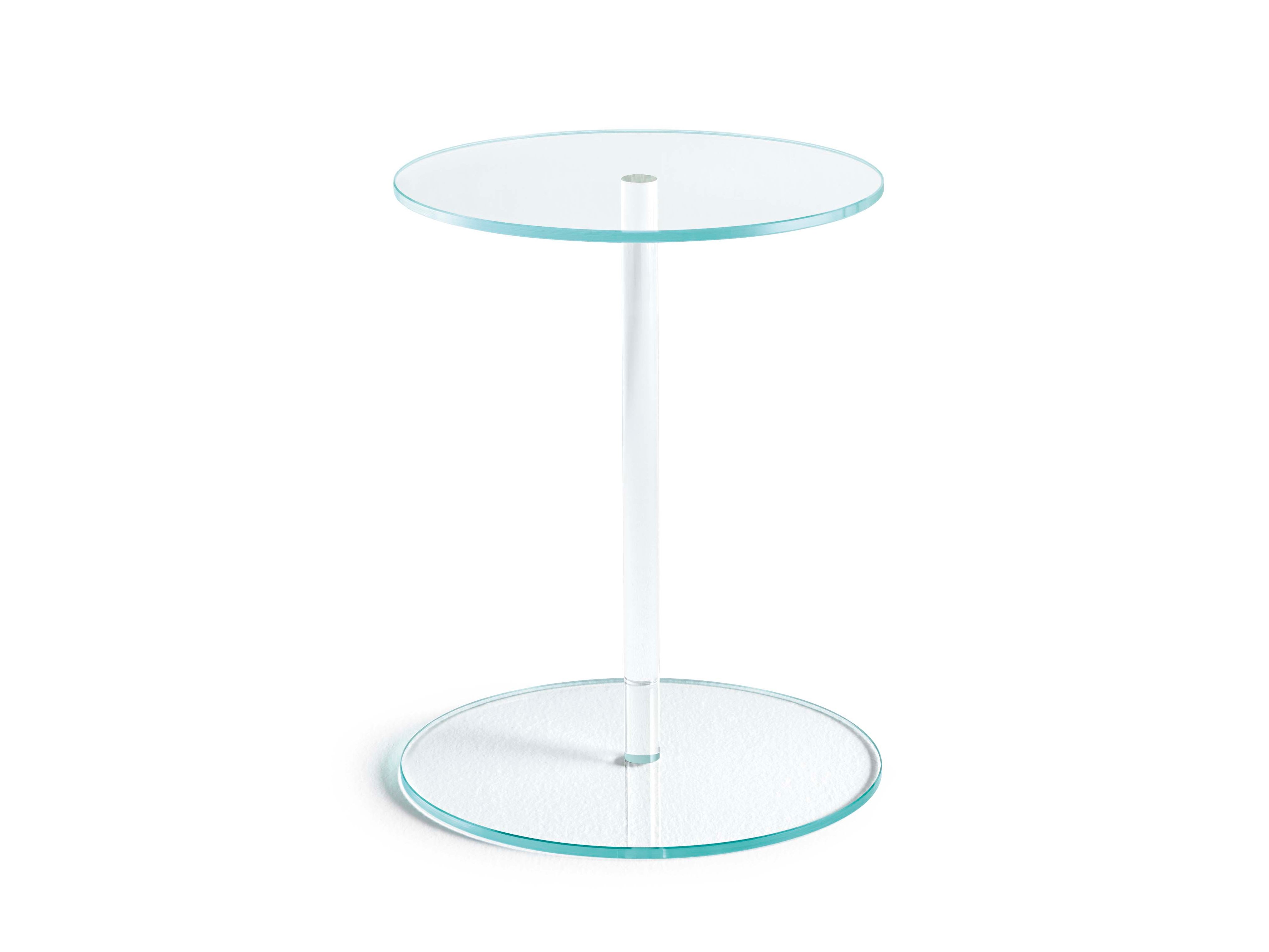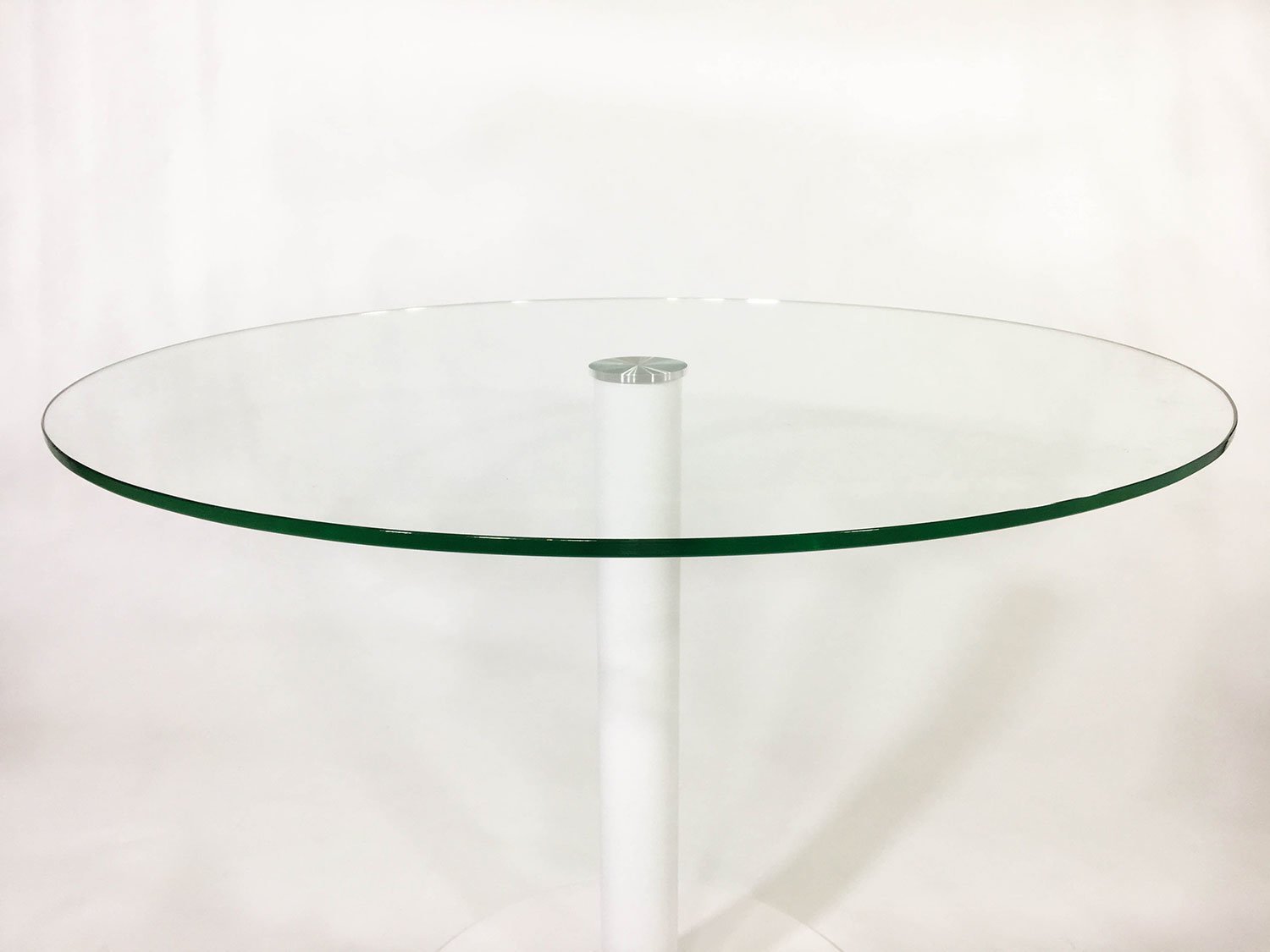 Круглый стеклянный стол Троя 18 прозрачный c белым подстольем (900х900)