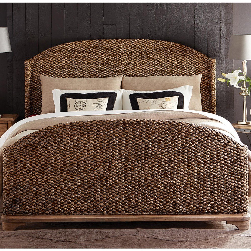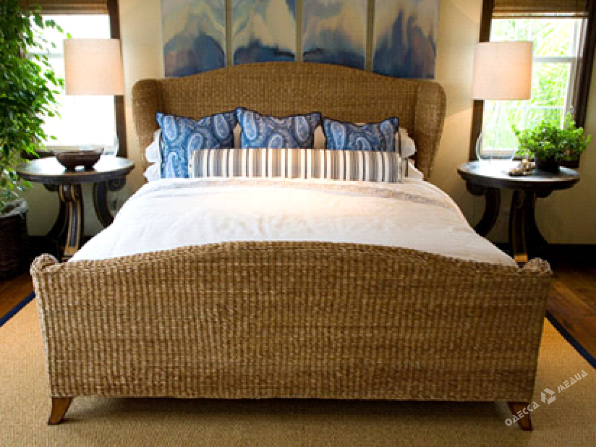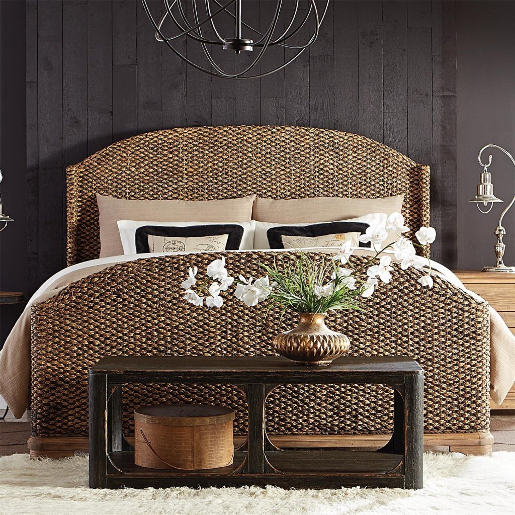 Кровать с изголовьем из ротанга