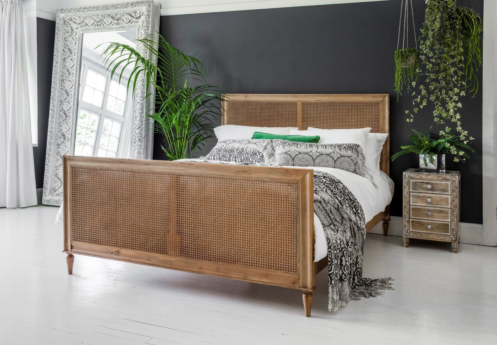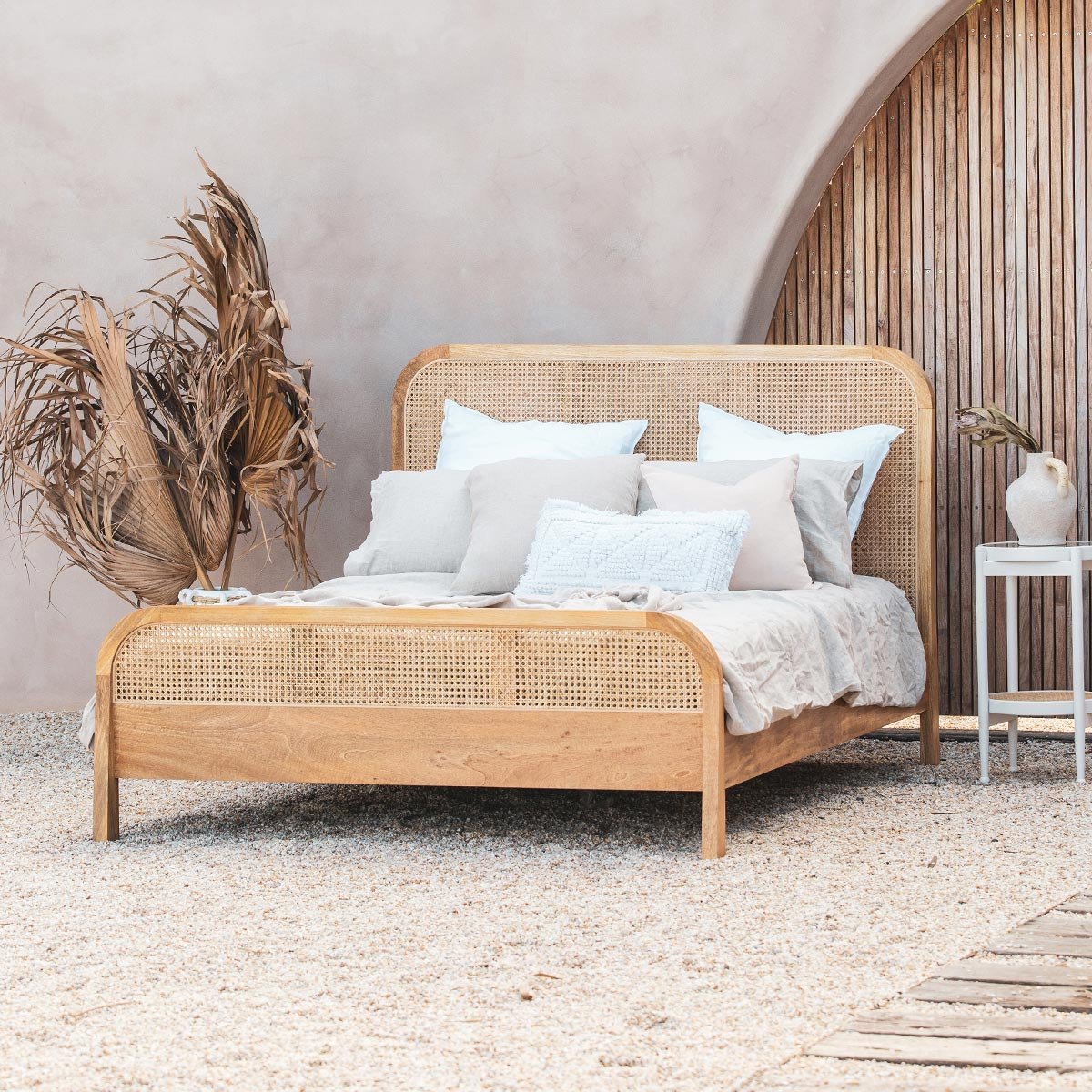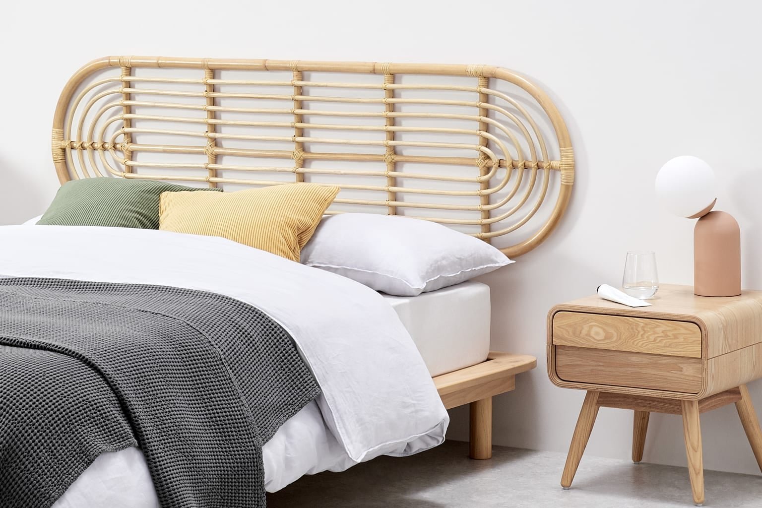 Кровать с изголовьем из ротанга