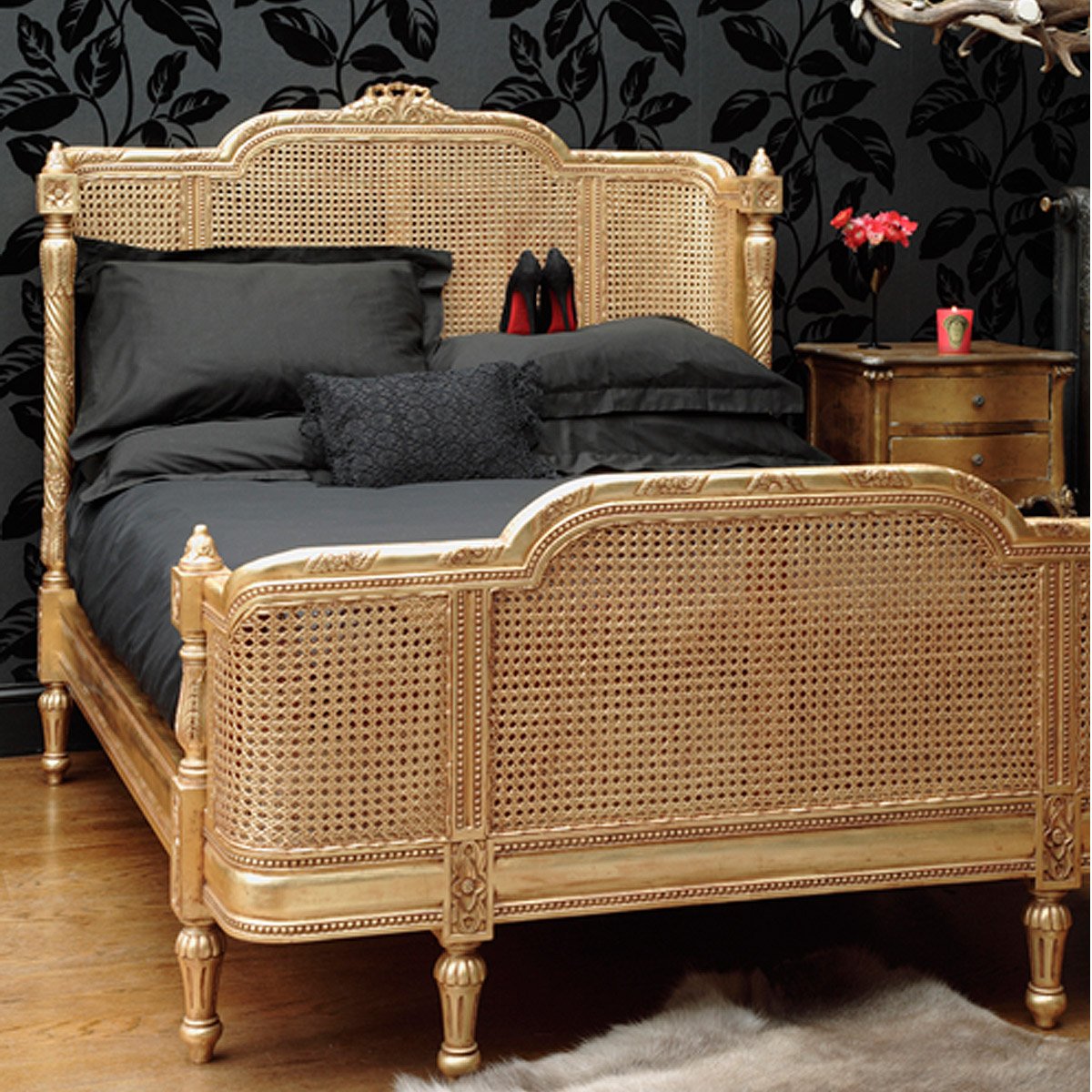 Кровать с плетеной спинкой
