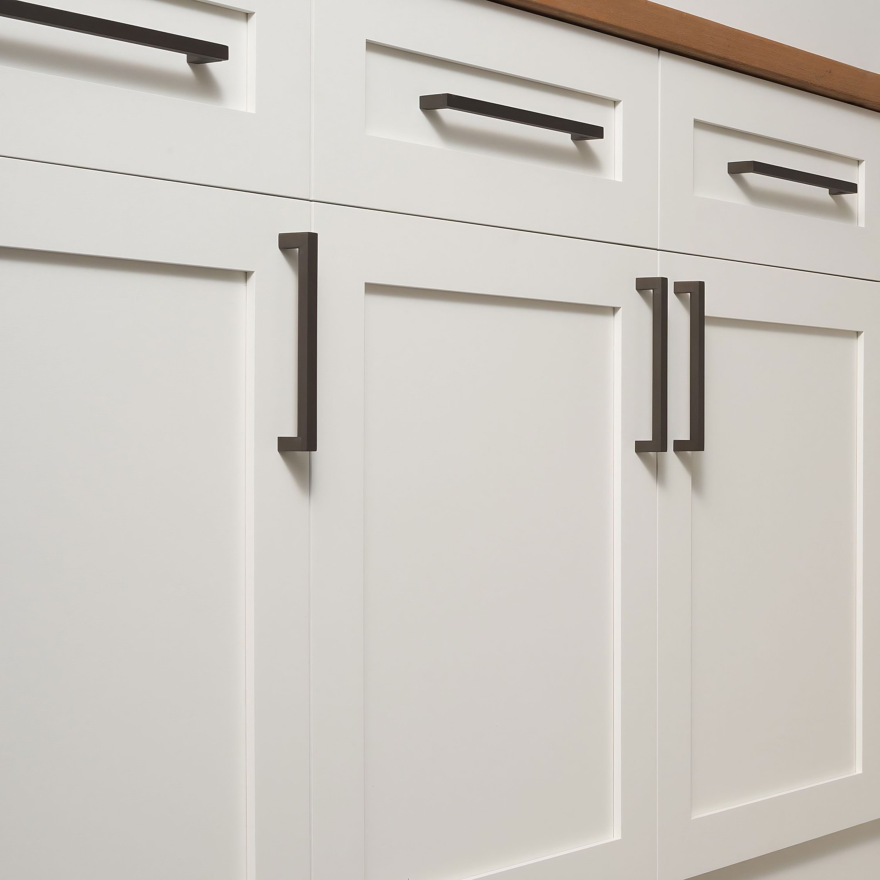 Ручки на белых фасадах кухни
