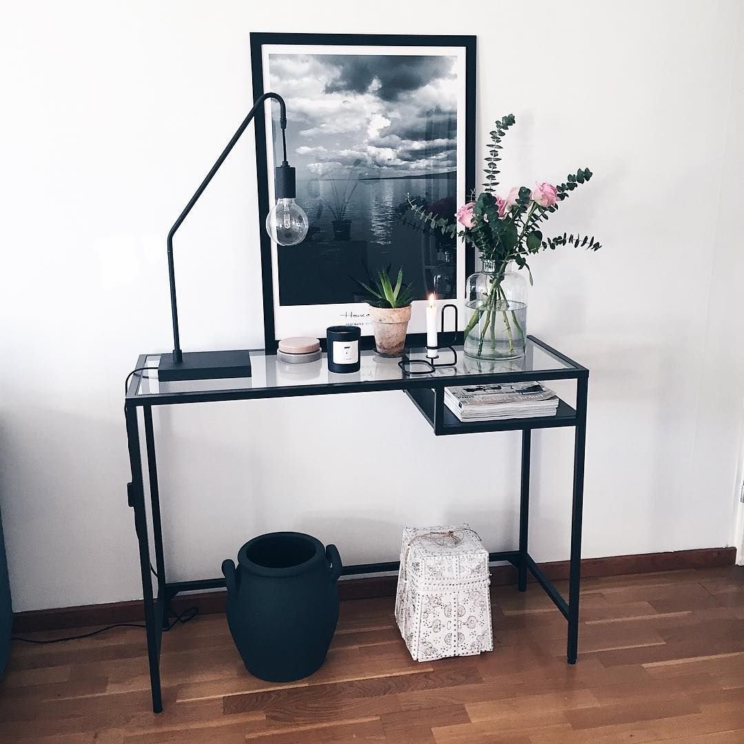 Vittsjö ВИТШЁ стол д/ноутбука, белый/стекло100x36 см