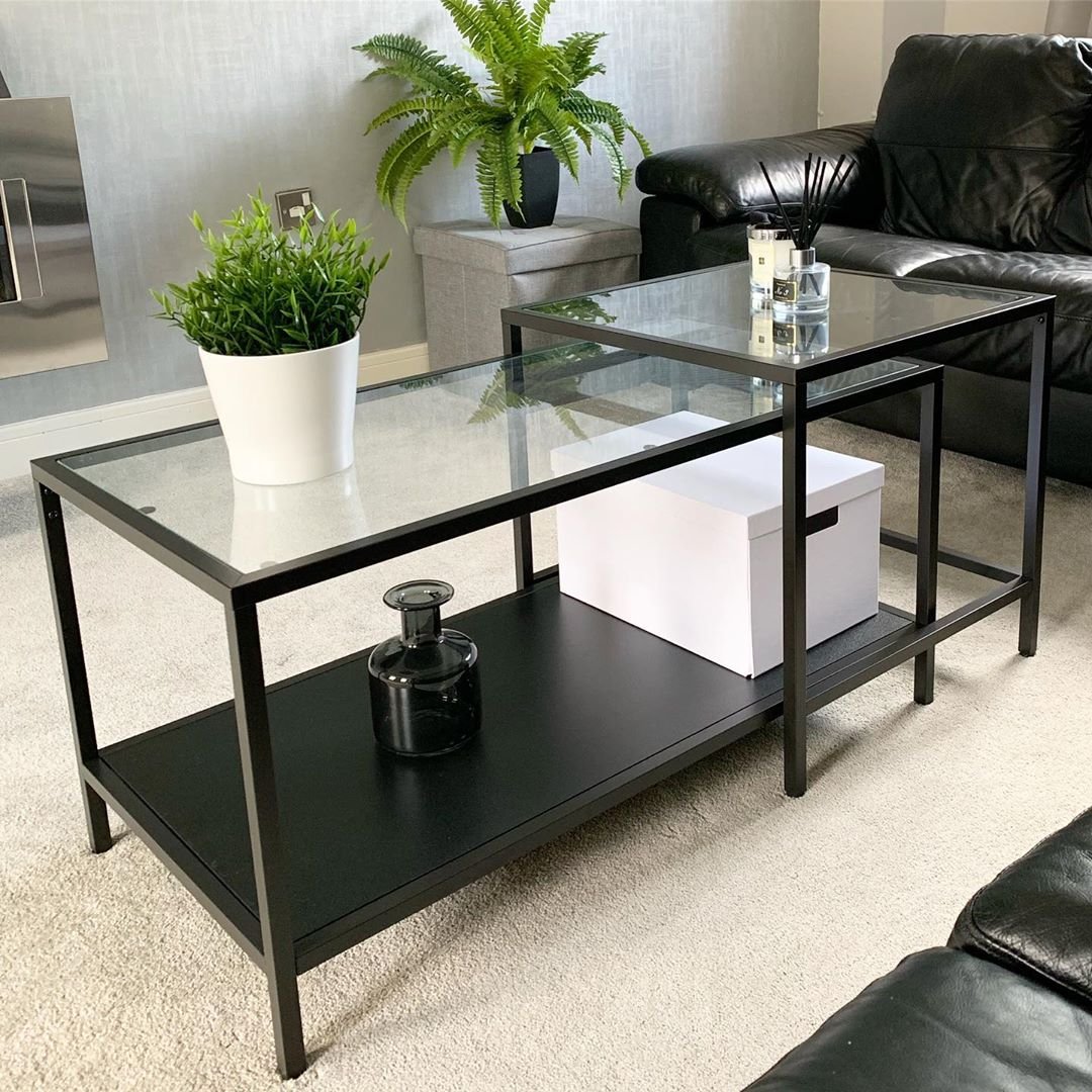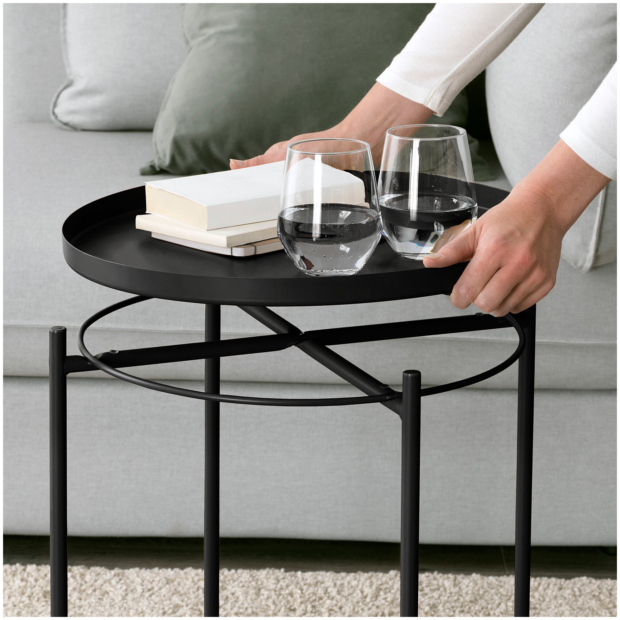 Klingsbo КЛИНГСБУ придиванный столик, черный/прозрачное стекло49x62 см