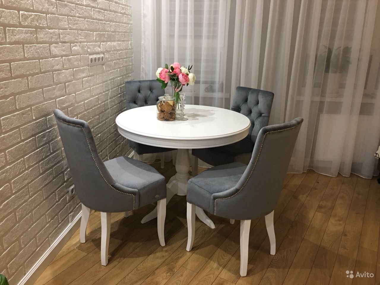 Белый круглый стол на кухню