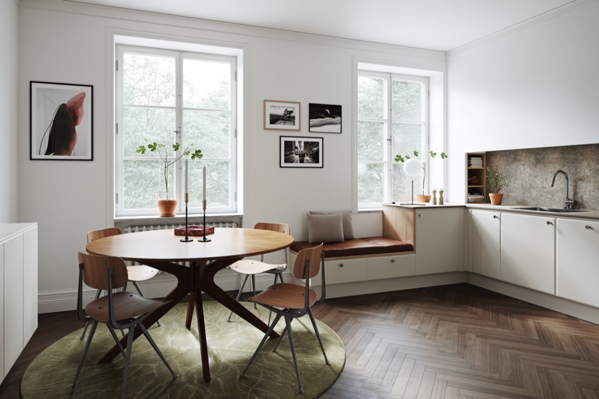 Круглый стол в интерьере кухни