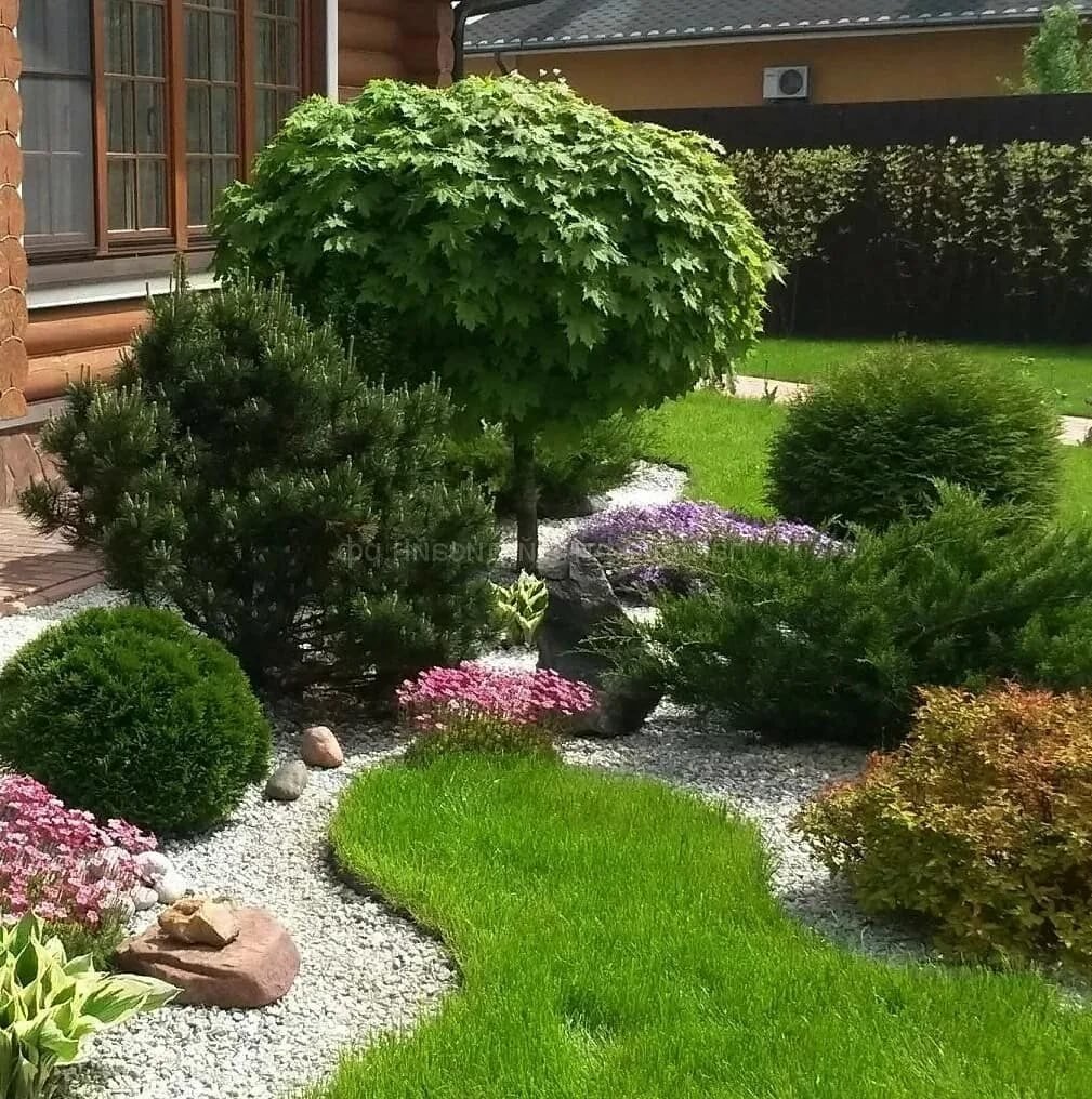 Рокарий с сосной и гортензии