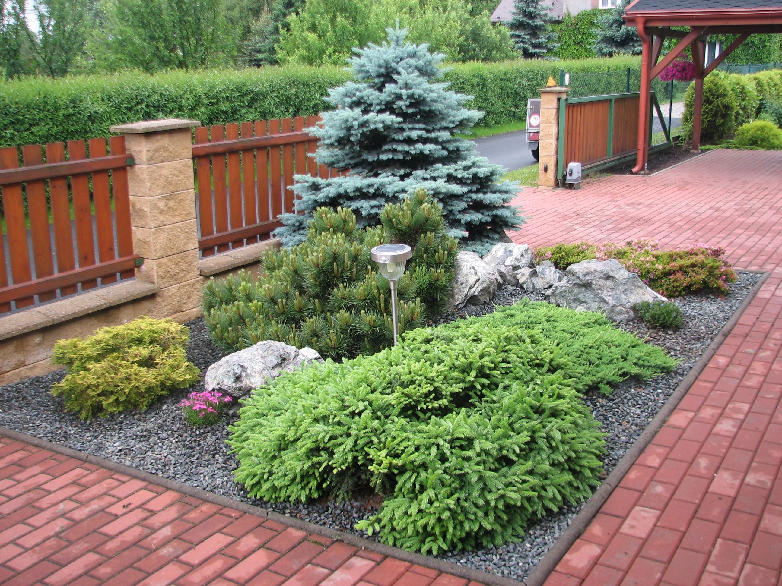 Ель Коника, можжевельник, спирея