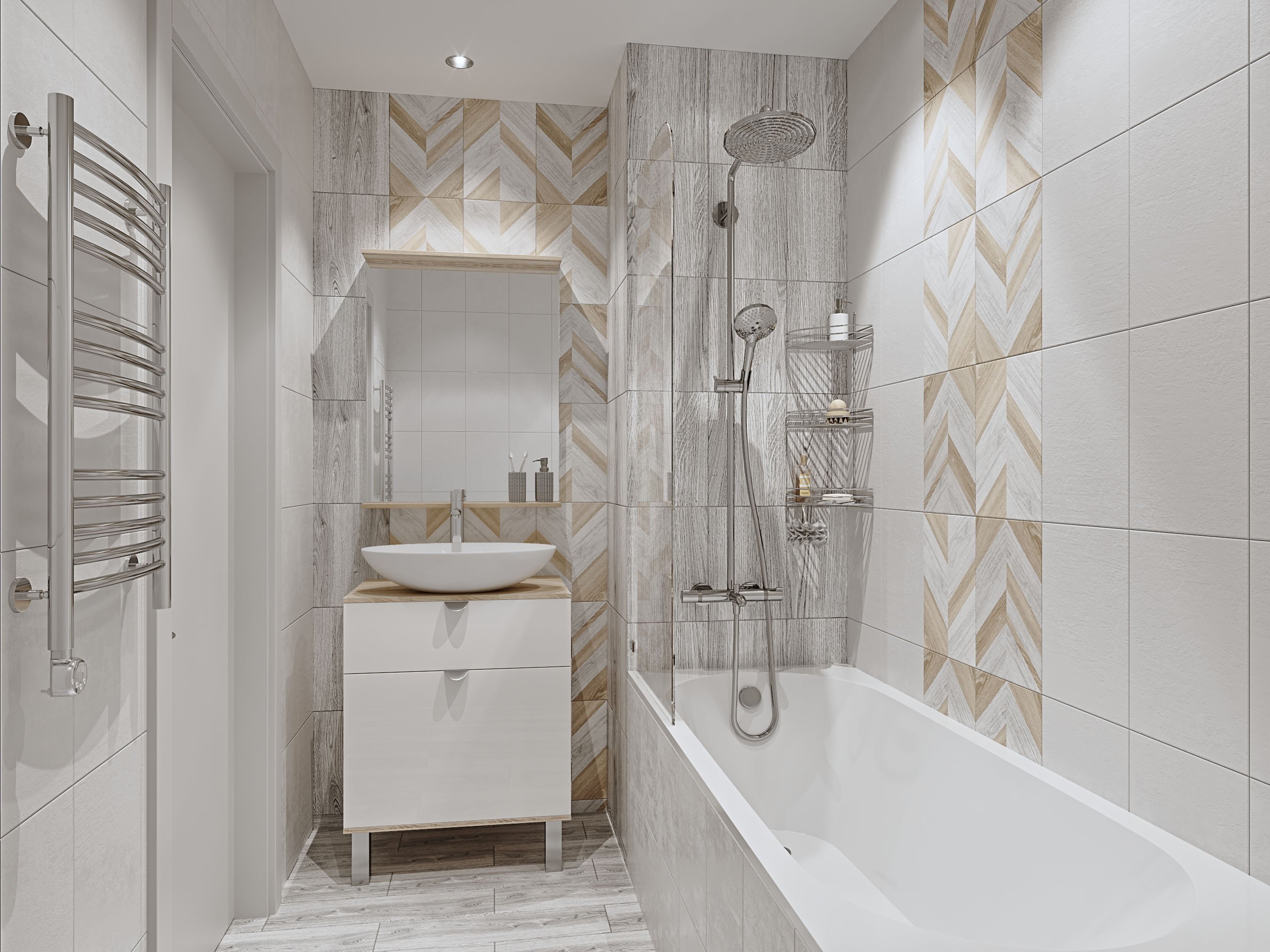 Плитка в разбежку в ванной
