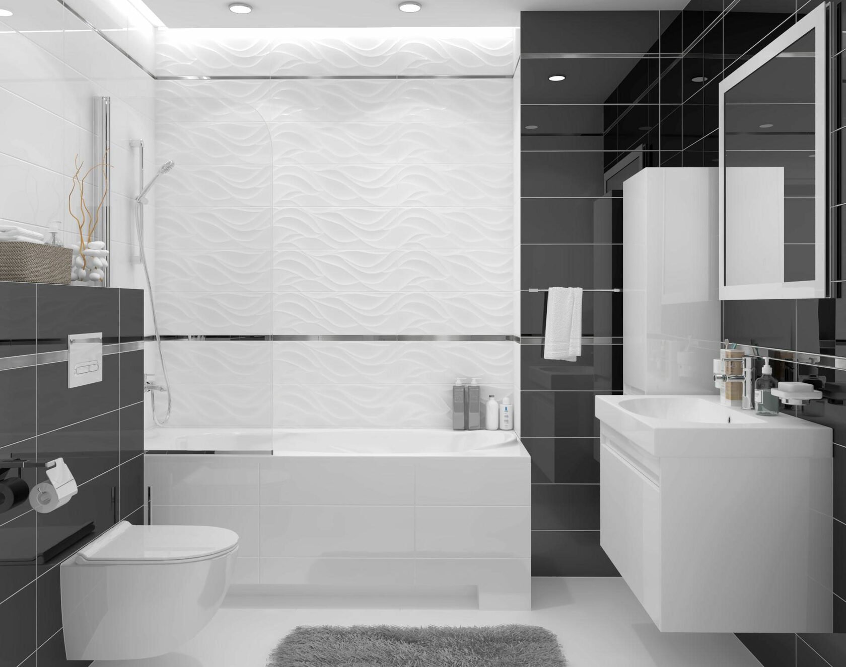 Плитка черно белая для ванны