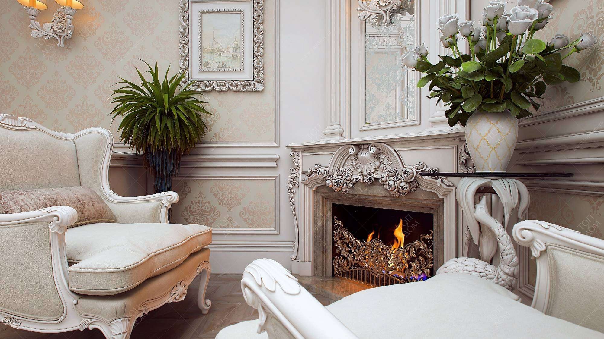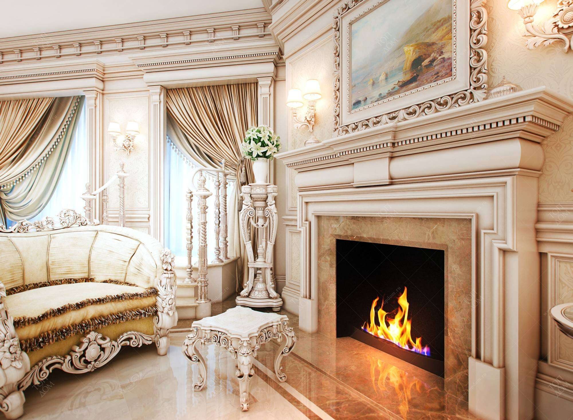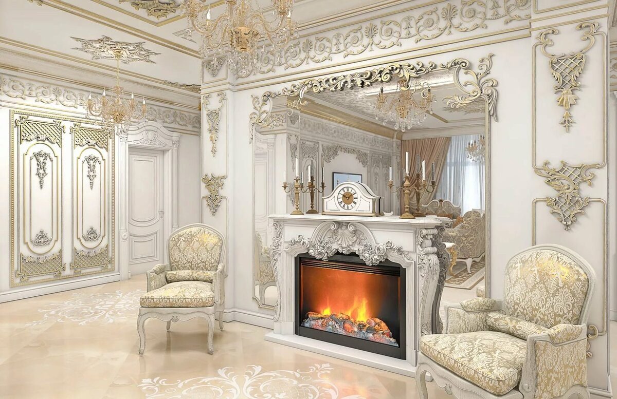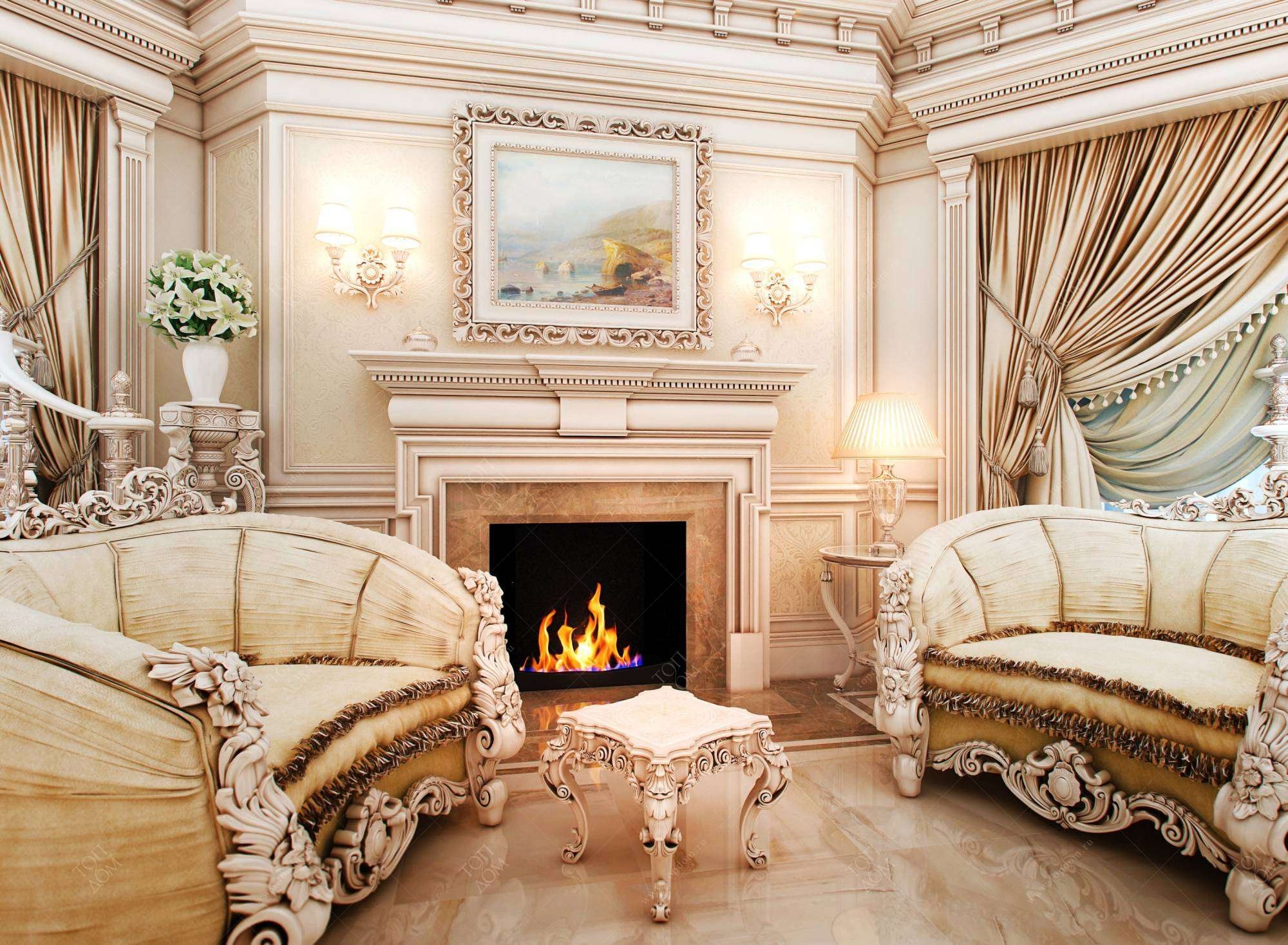 Гостиная в стиле Барокко с камином