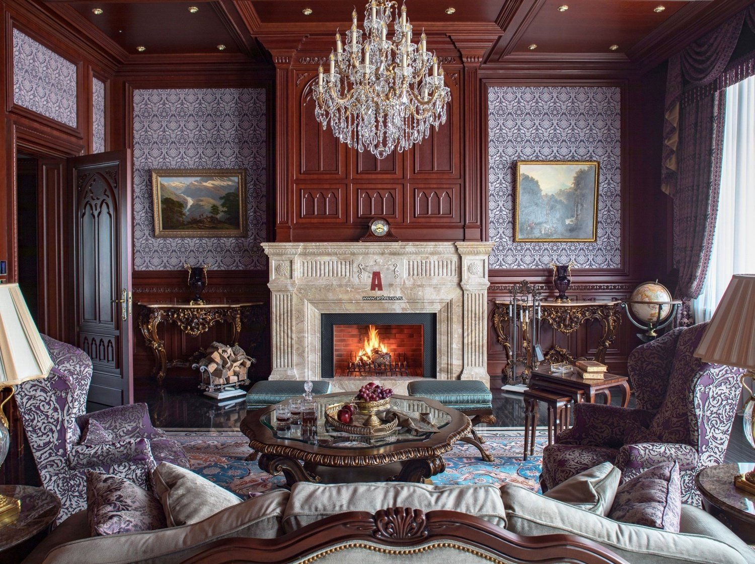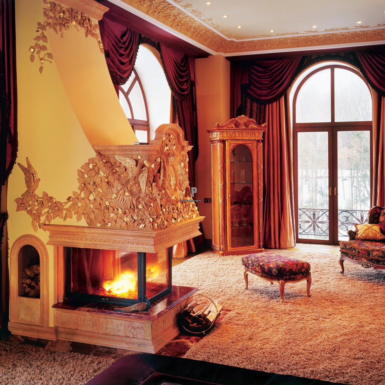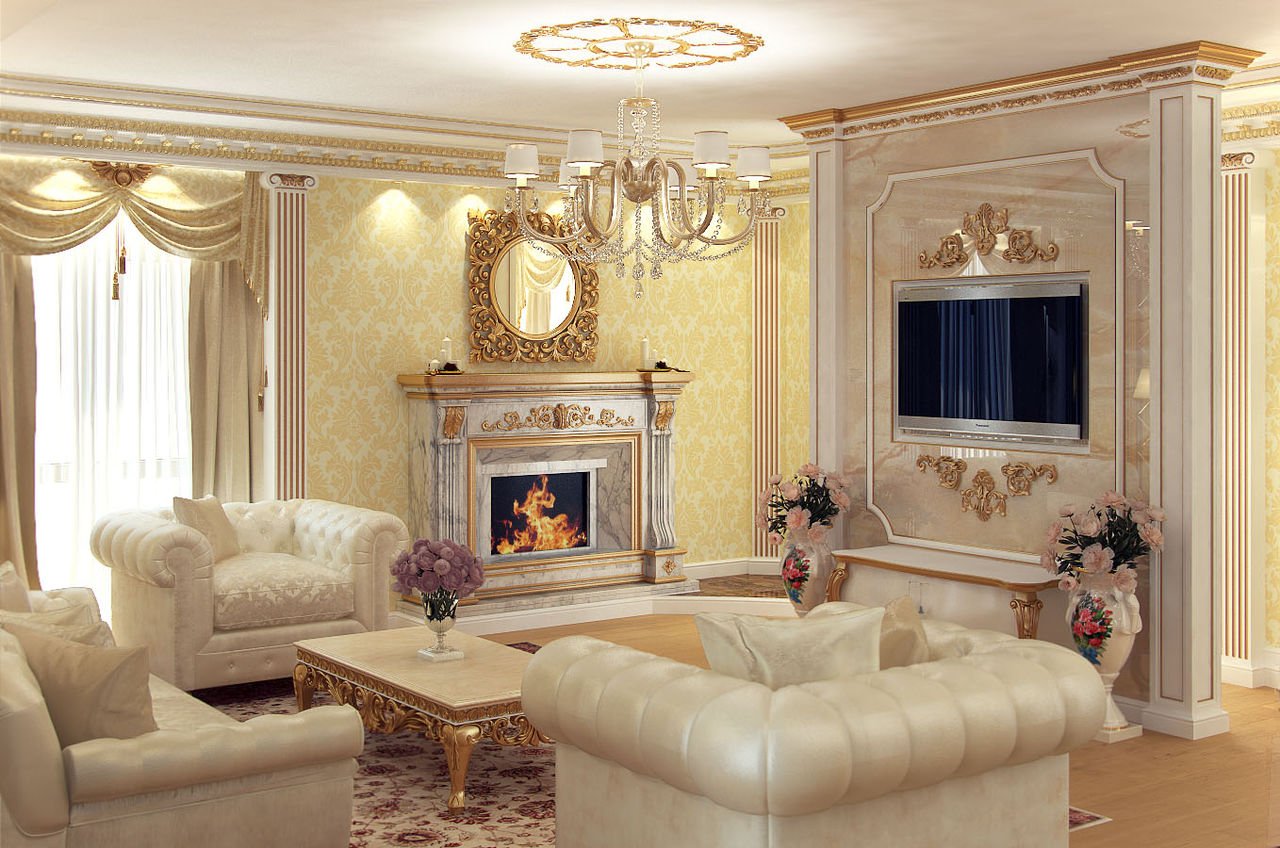 Гостиная в стиле Барокко с камином