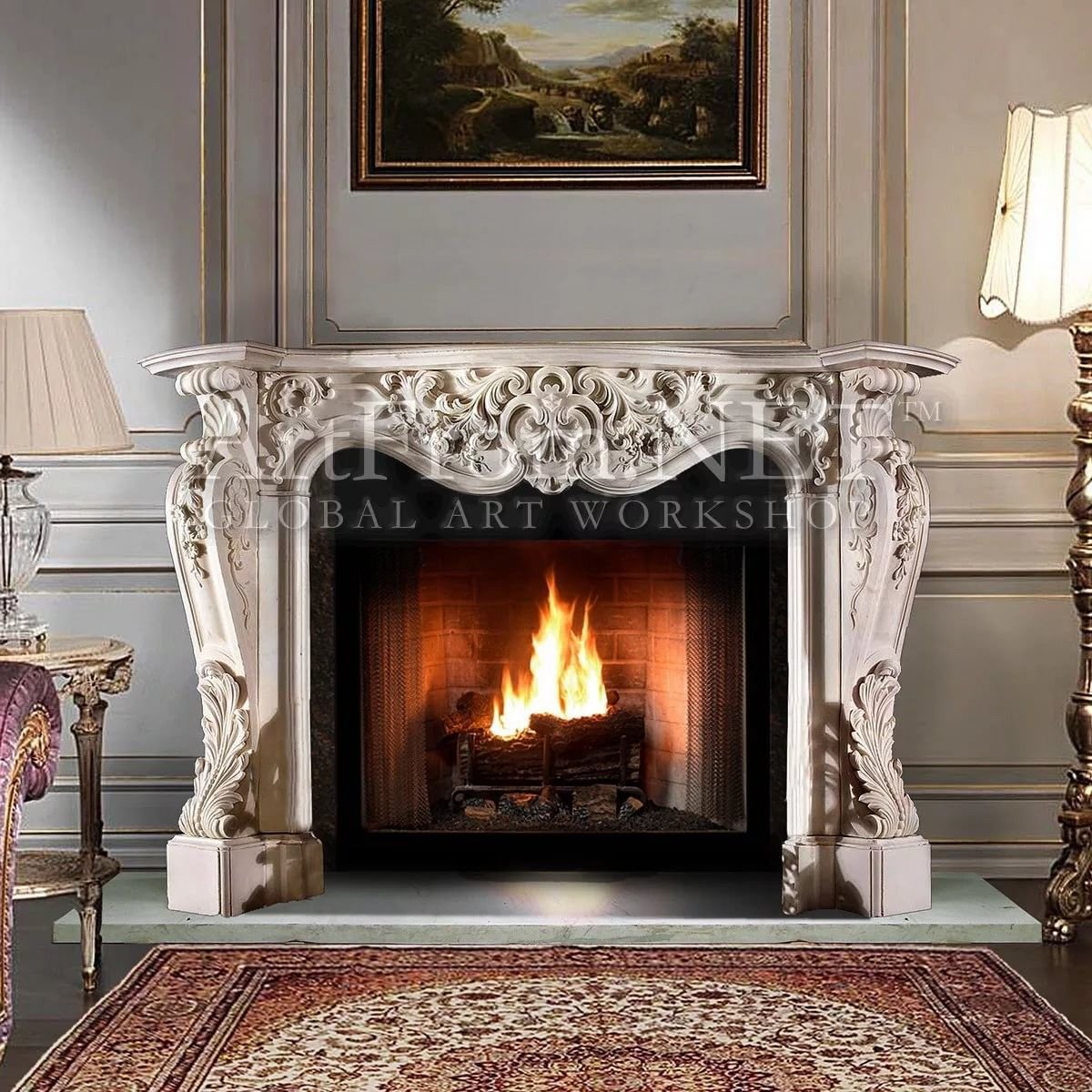 Камин из каррарского мрамора в стиле Людовика