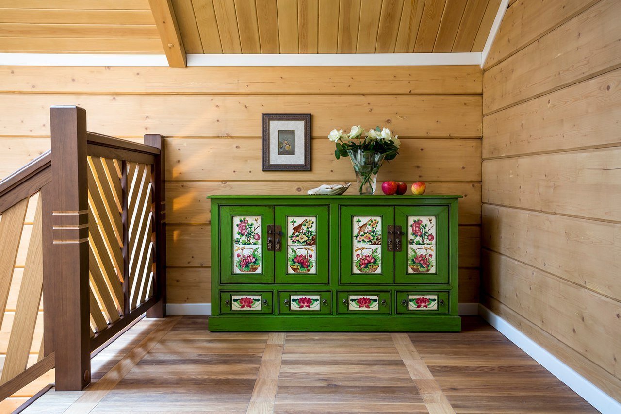 Цветные стены в деревянном доме