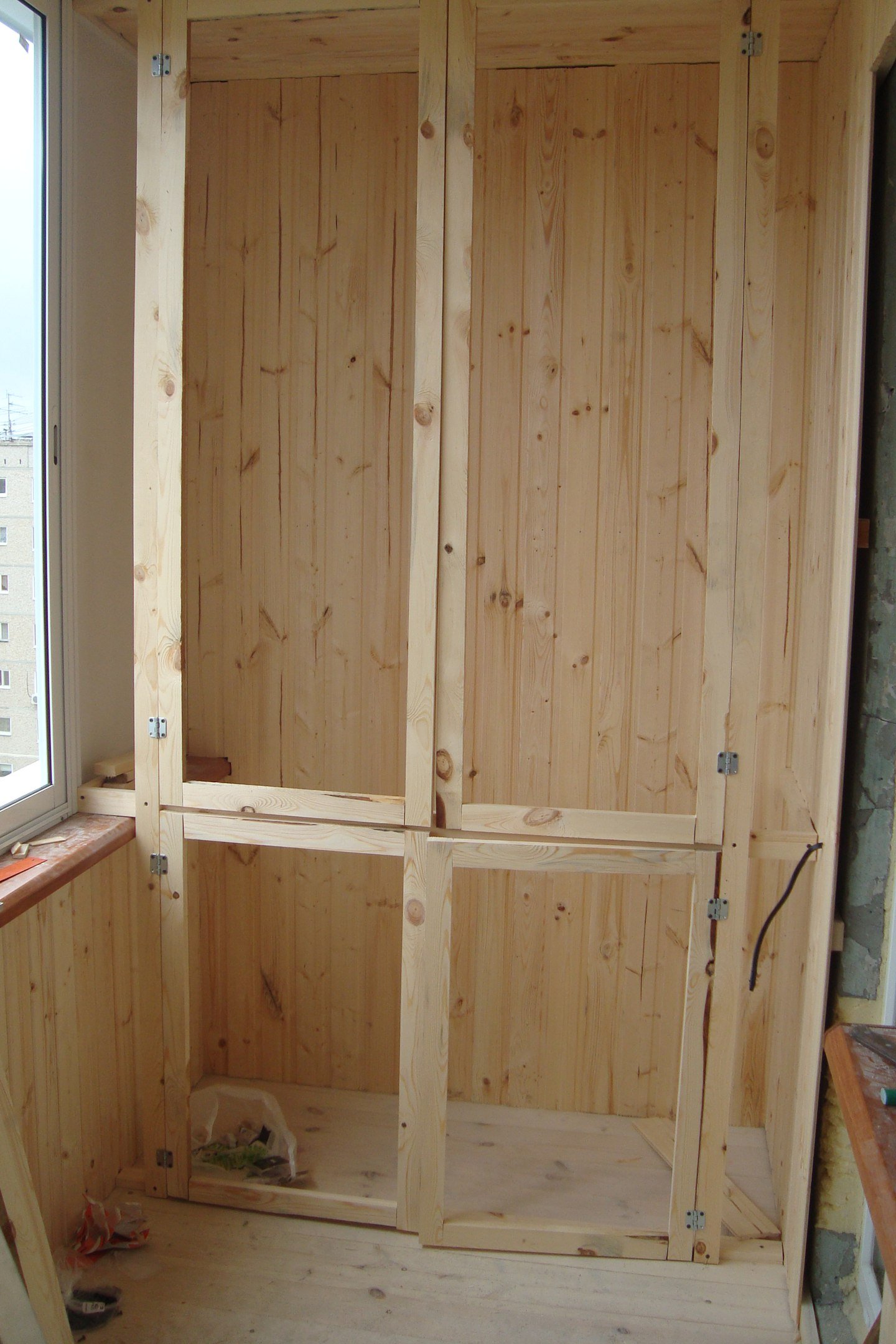 Каркас шкафа на балконе из бруса