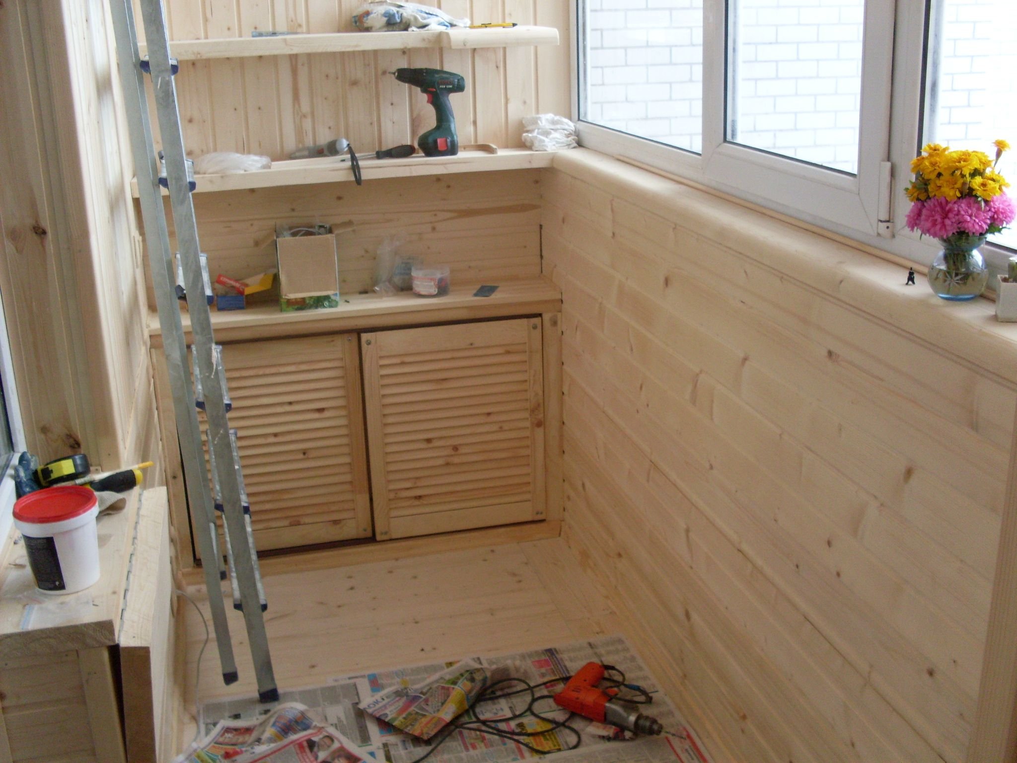 Обшивка балкона со шкафами