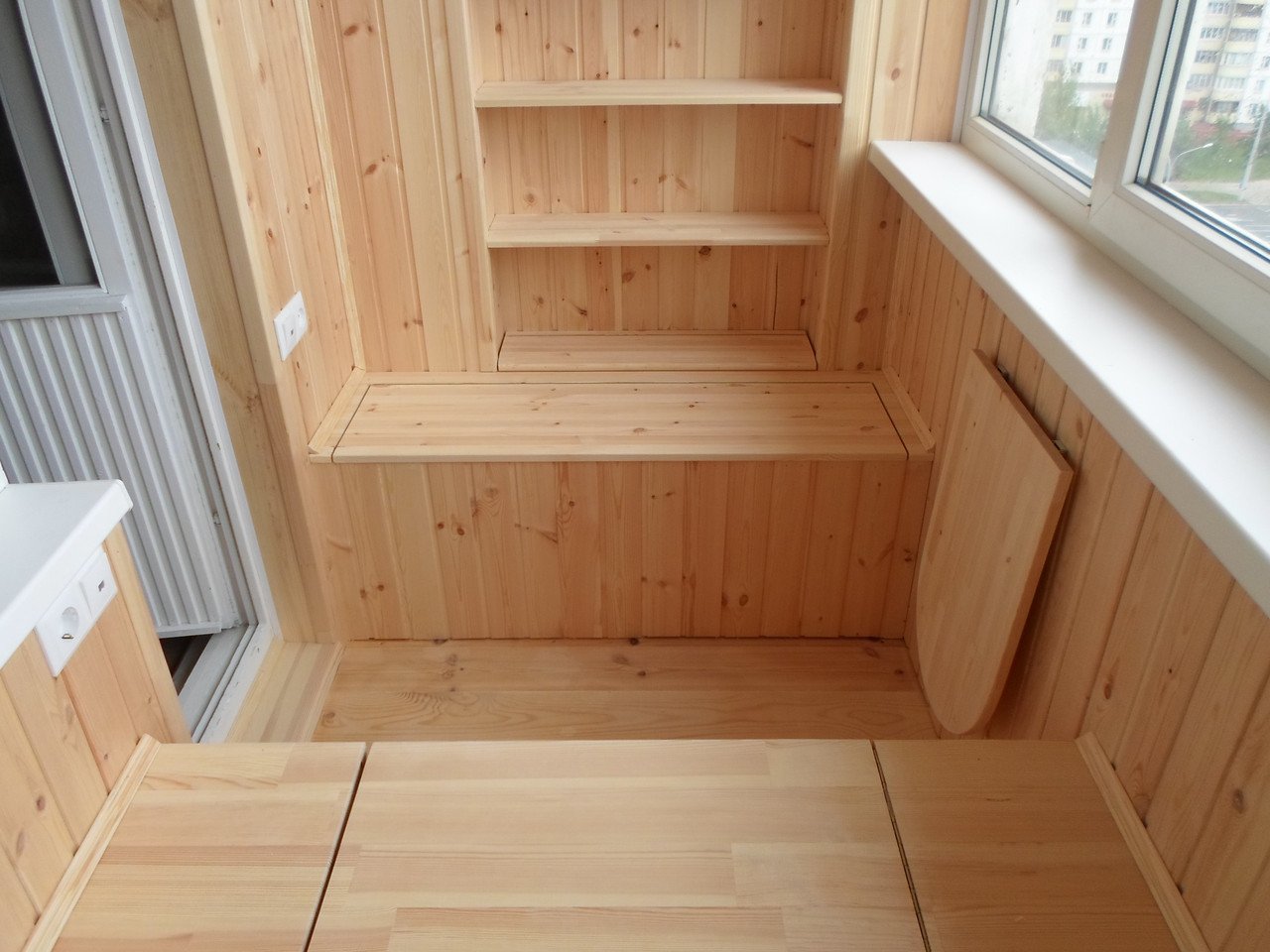 Балкон отделка вагонкой с полками