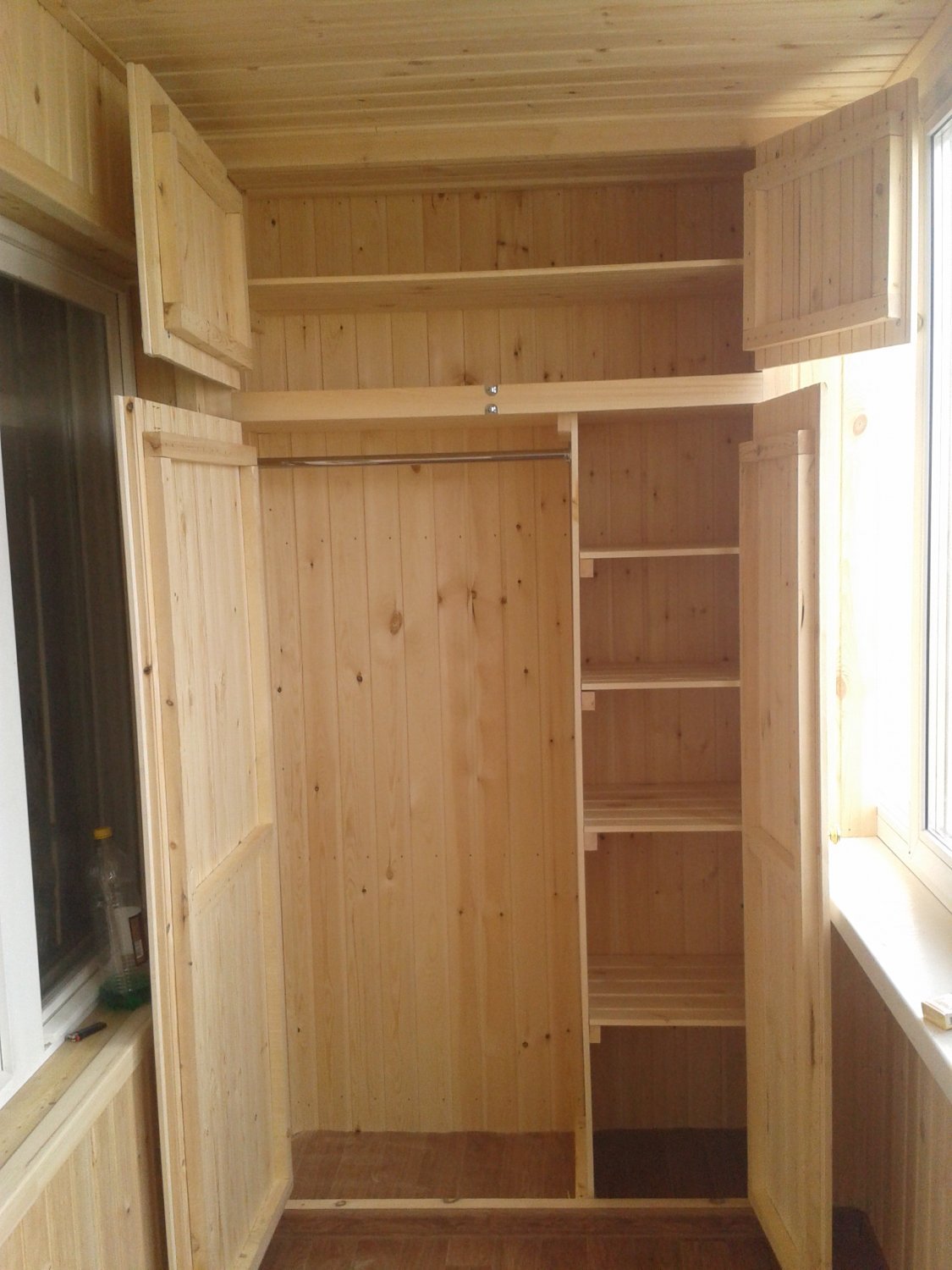 Угловой шкаф на балкон из вагонки