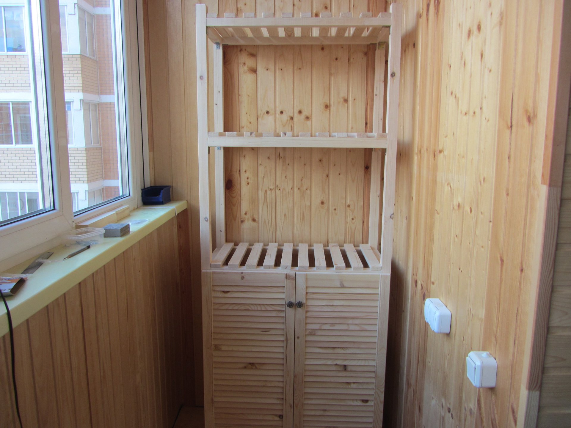 Шкаф на балконе из вагонки