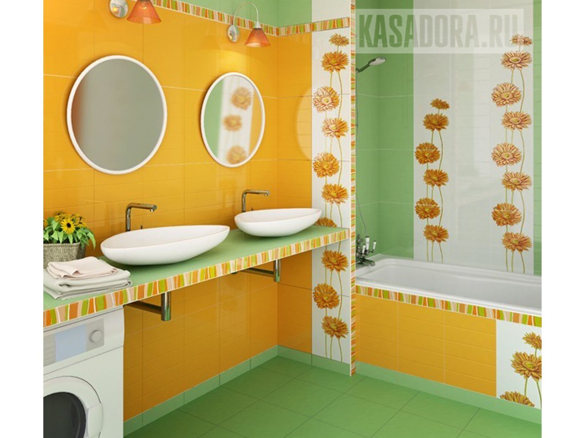 Оранжево зеленая плитка для ванной