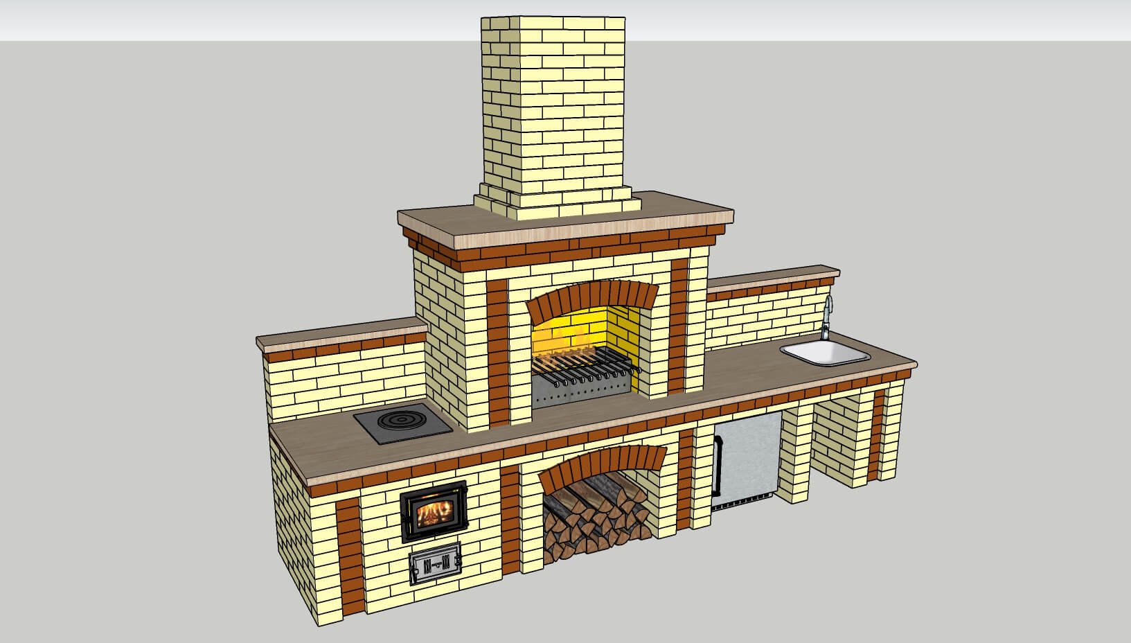 Угловой комплекс барбекю мойка мангал казан порядовка