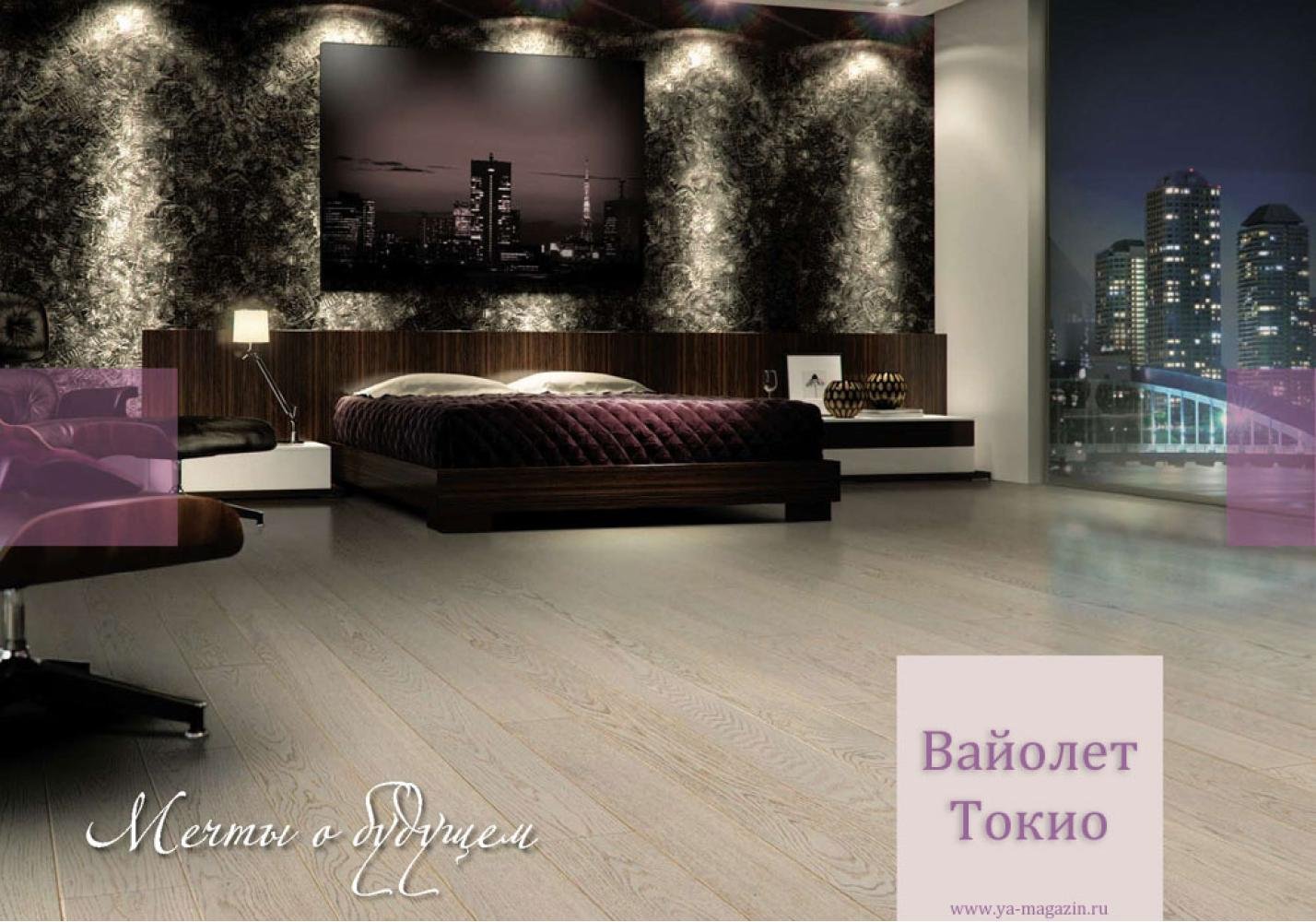 Спальня с темным ламинатом