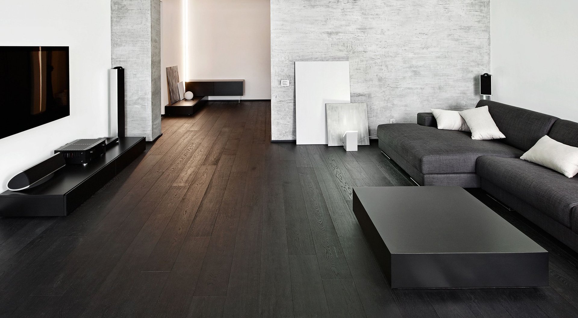 Черный ламинат в зал