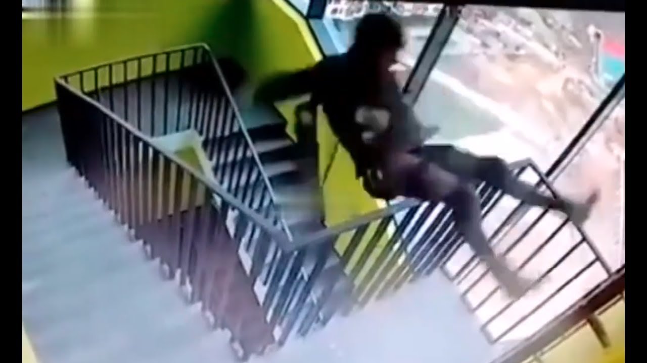 Женщина падает с лестницы