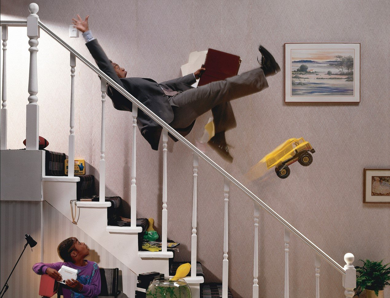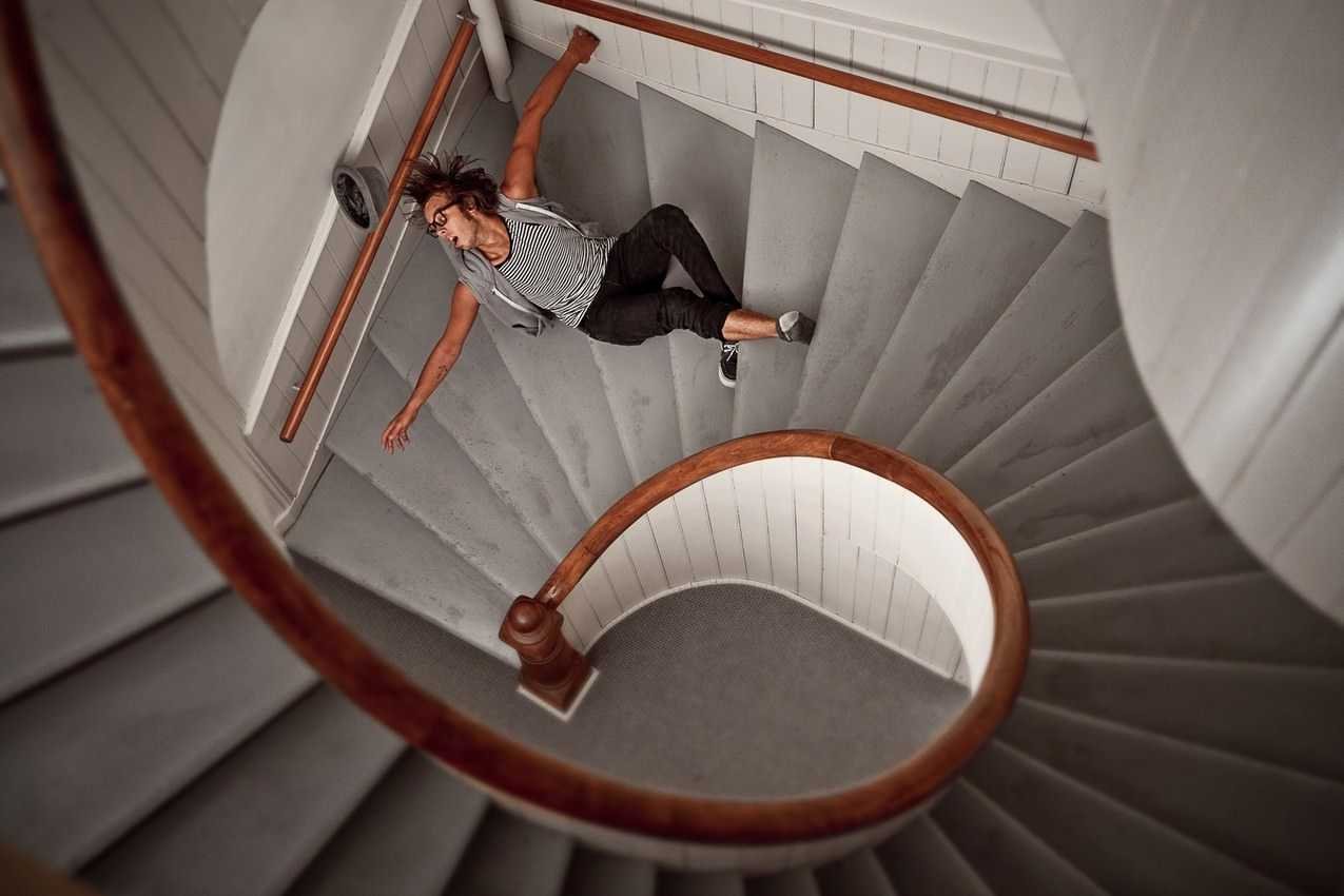Падает с лестницы